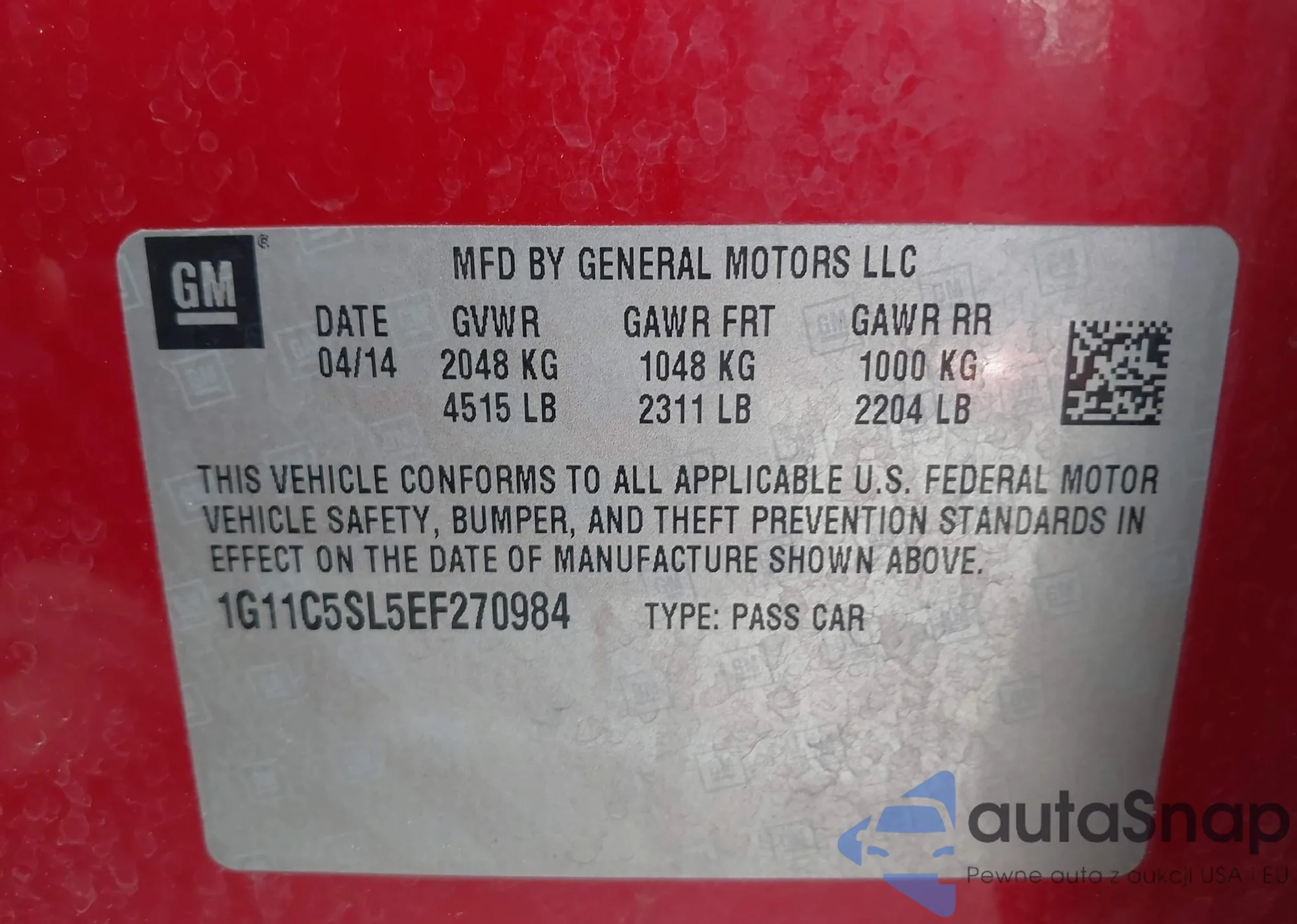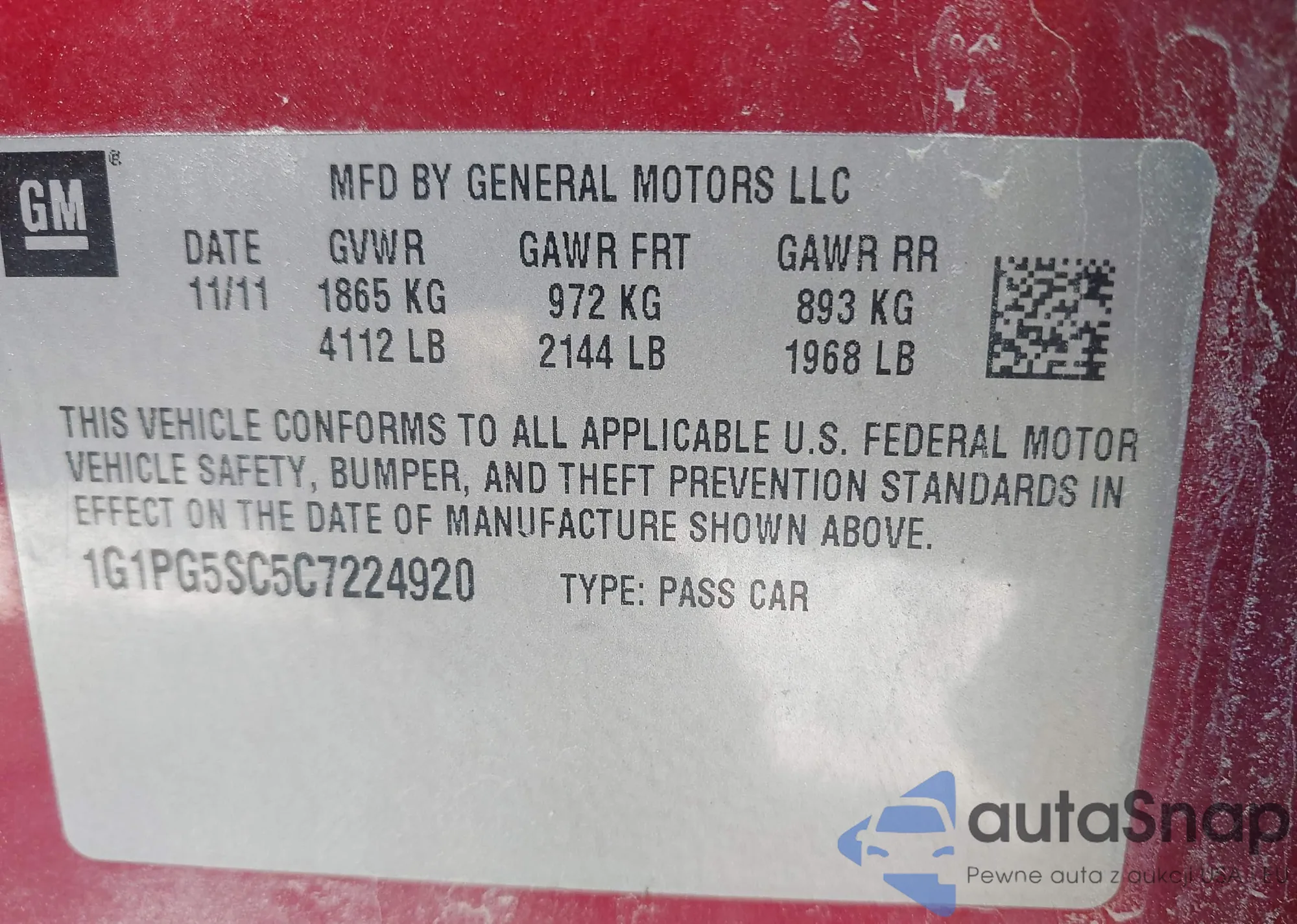 • VIN 1G1PG5SC5C7224920