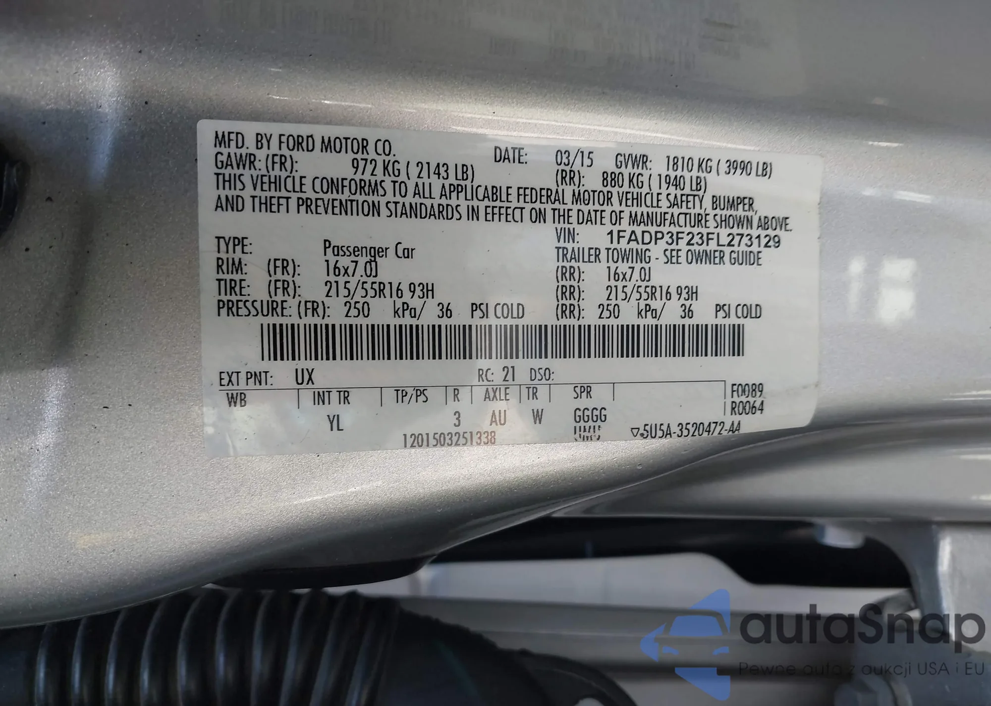 LOT: 42237190 VIN: 1FADP3F23FL273129