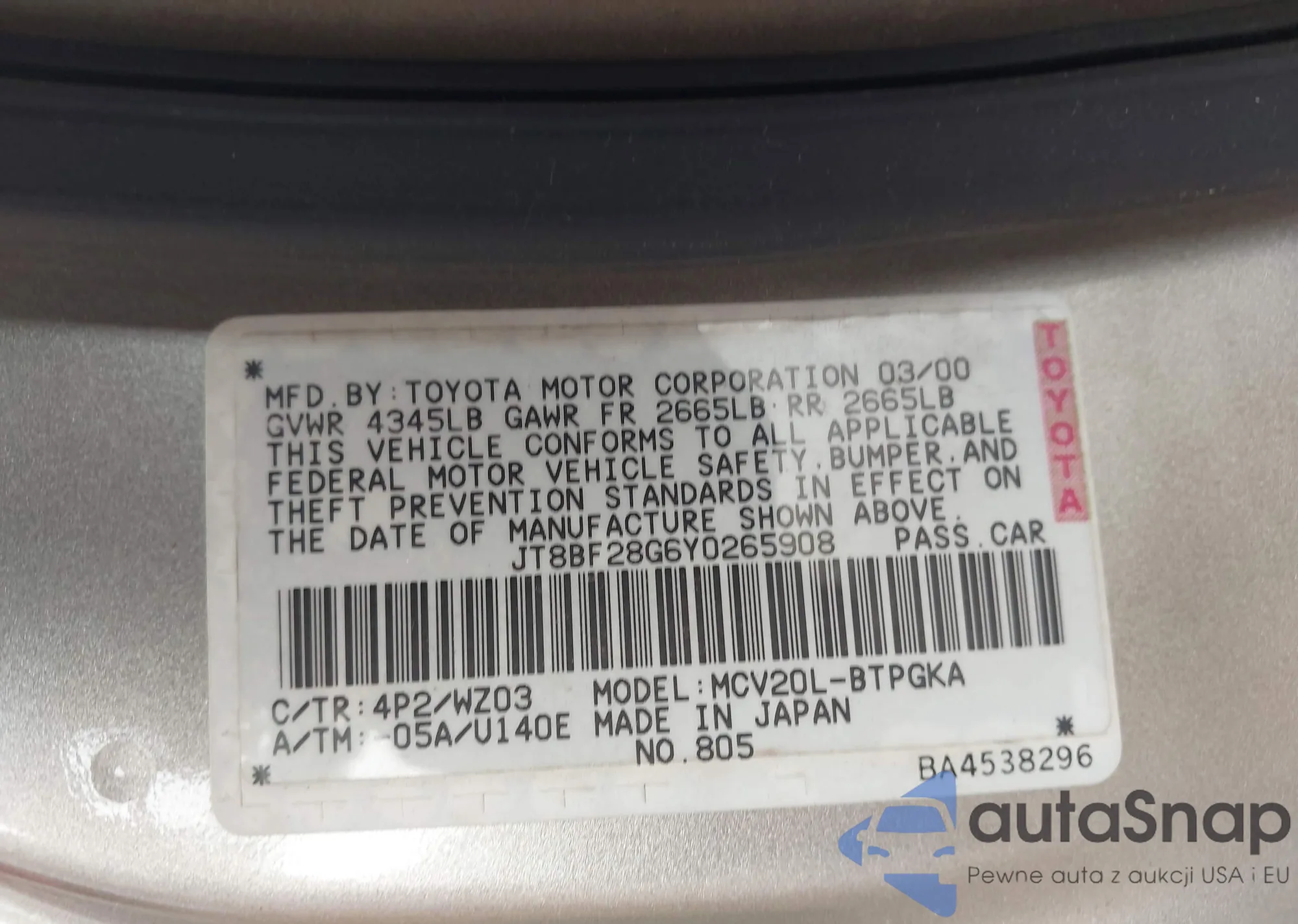 LOT: 41989950 VIN: 5TFAX5GN9LX174305