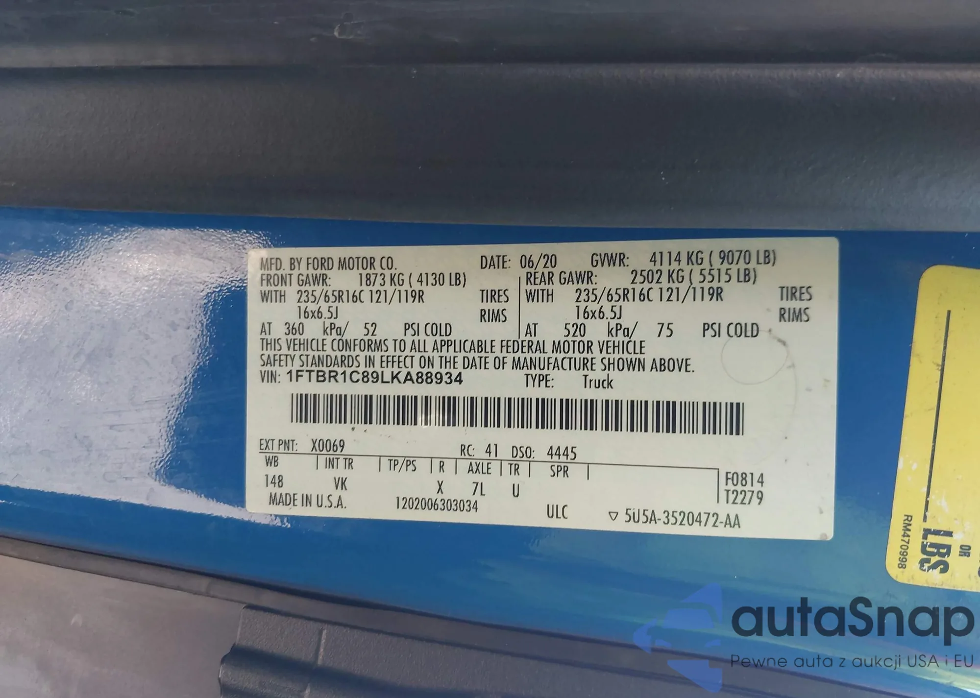 • VIN 1FTBR1C89LKA88934