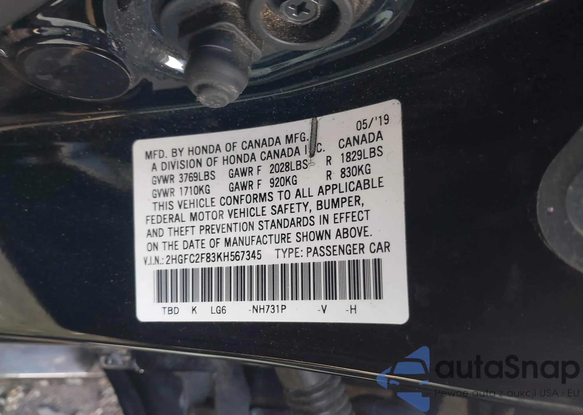 LOT: 42168328 VIN: 2HGES16573H500490