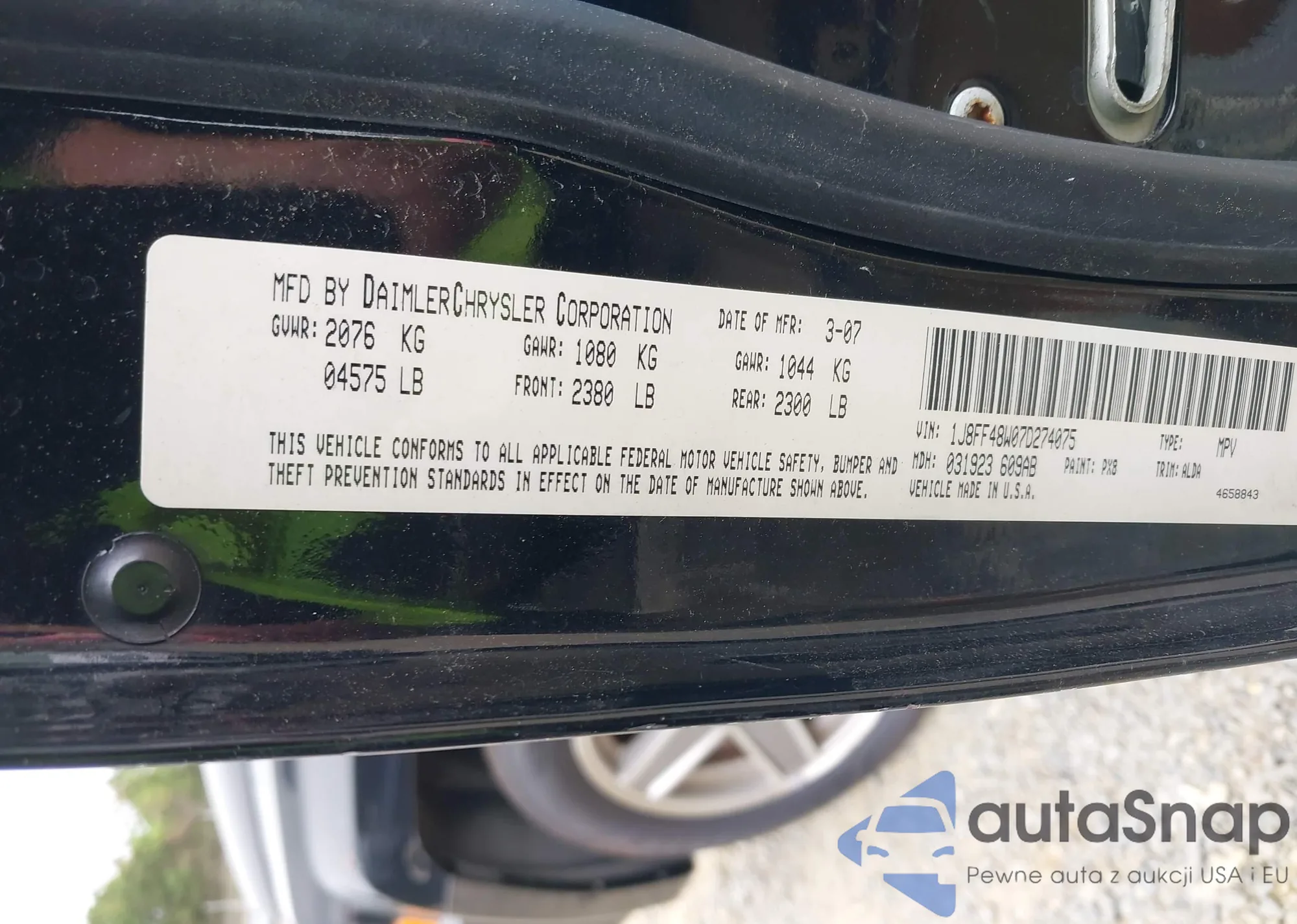 • VIN 1J8FF48W07D274075