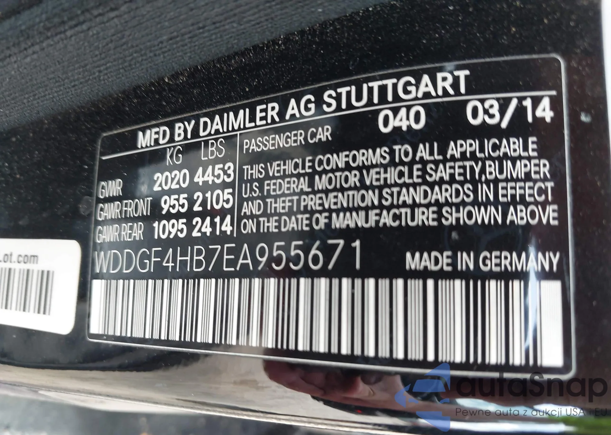LOT: 42314853 VIN: WDDGF4HB7EA955671