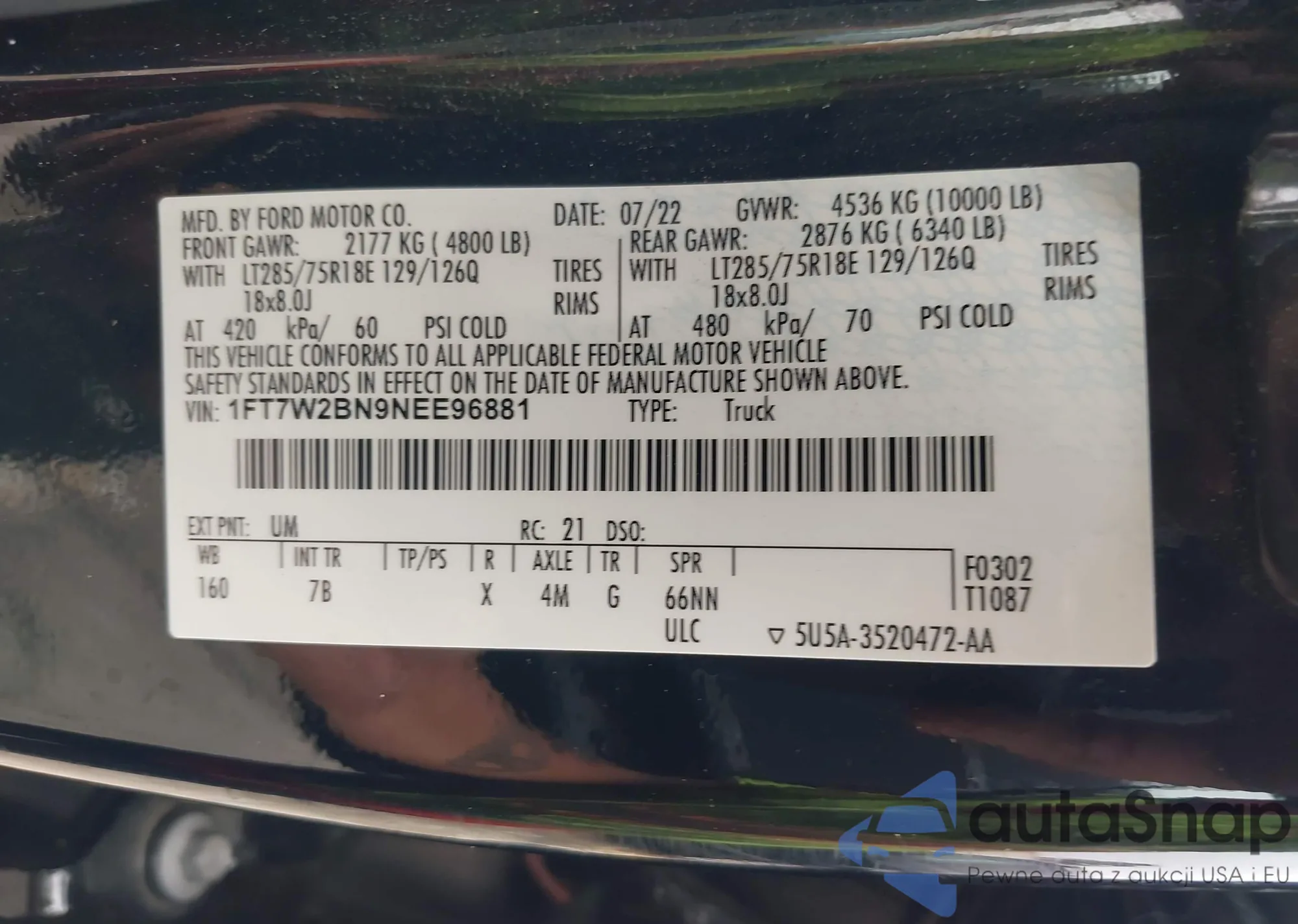 • VIN 1FT7X2B64NEE67861