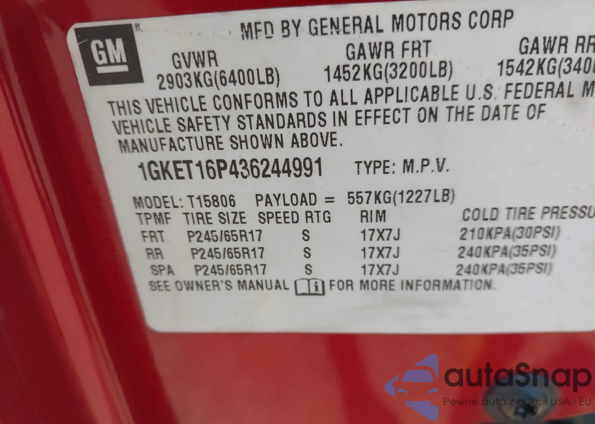 LOT: 42210957 VIN: 1GKDT13S262222939