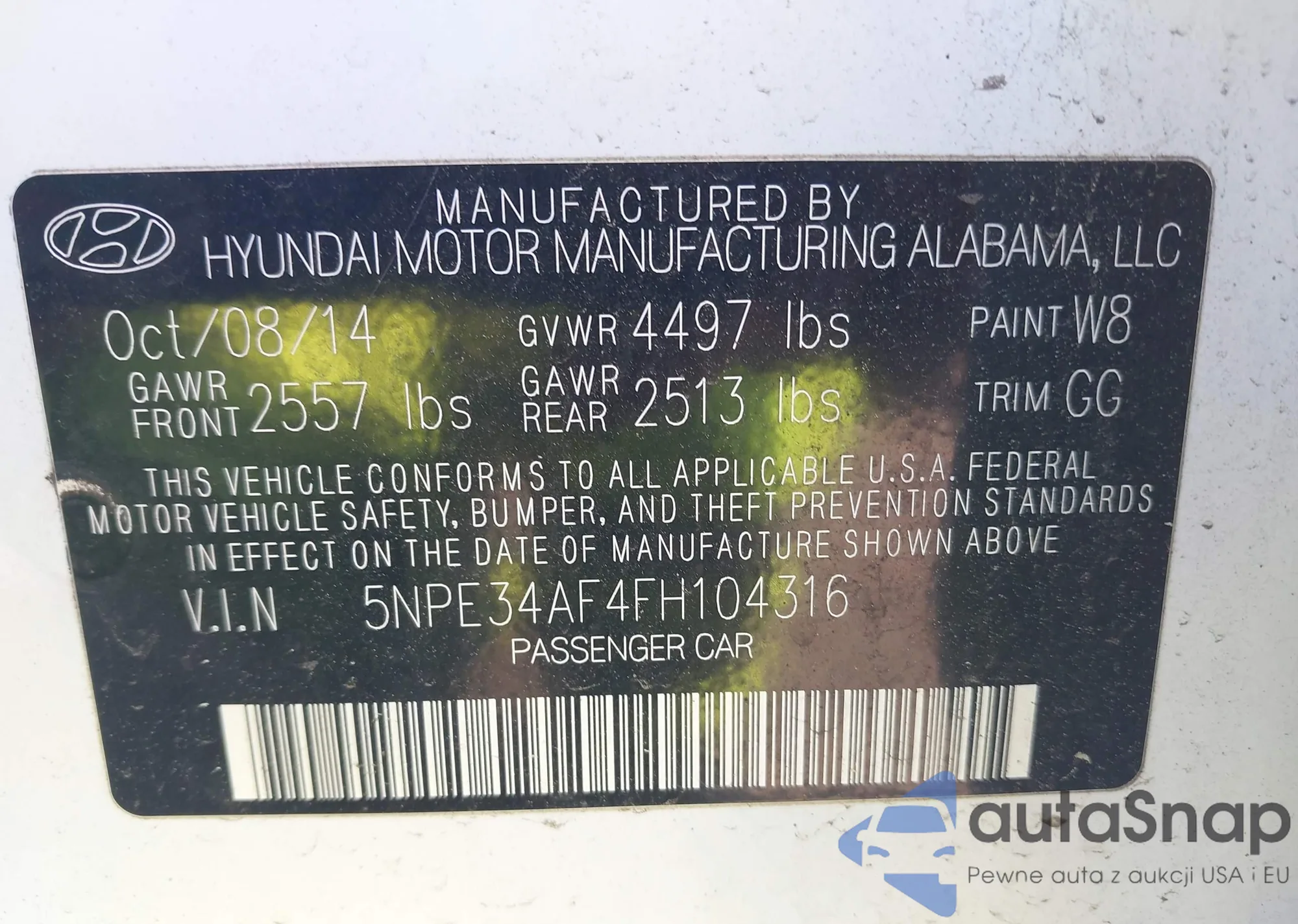 • VIN 5NPE34AF4FH104316