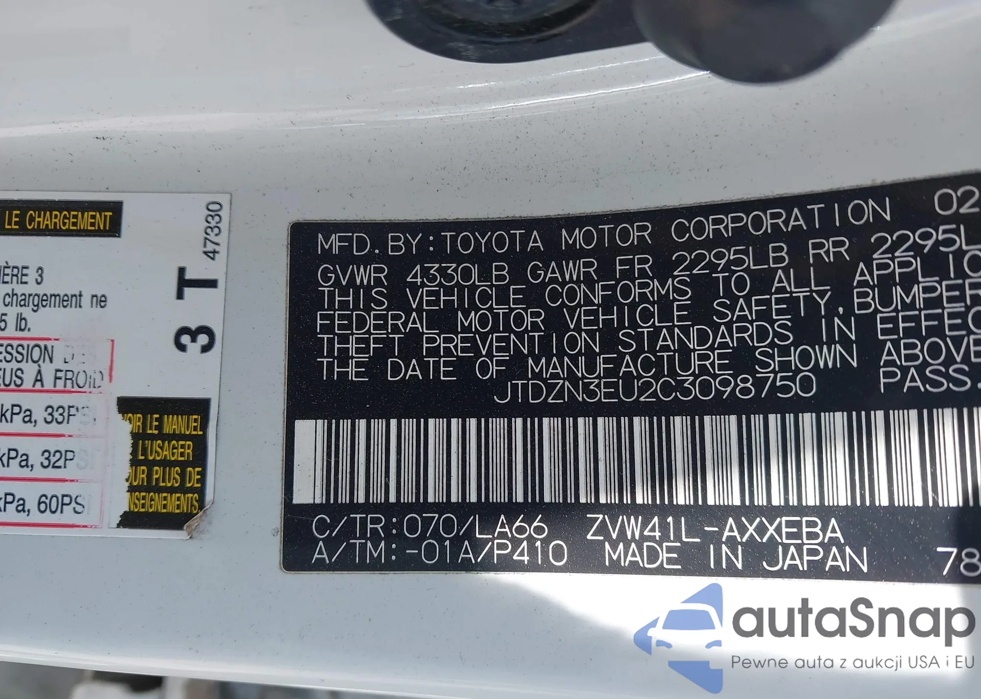 LOT: 42190084 VIN: JTDZN3EU2C3098750
