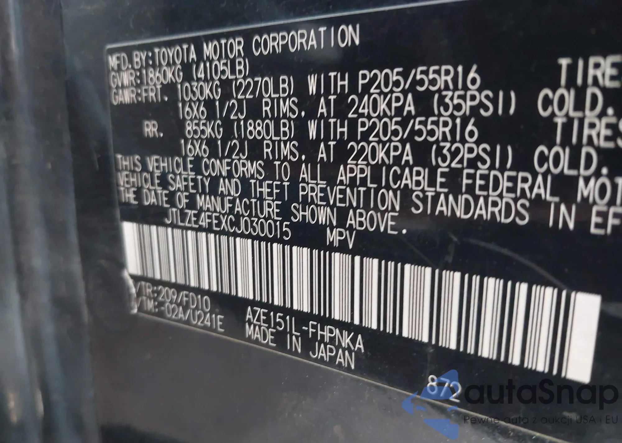 • VIN 2T3H1RFV2KW037427