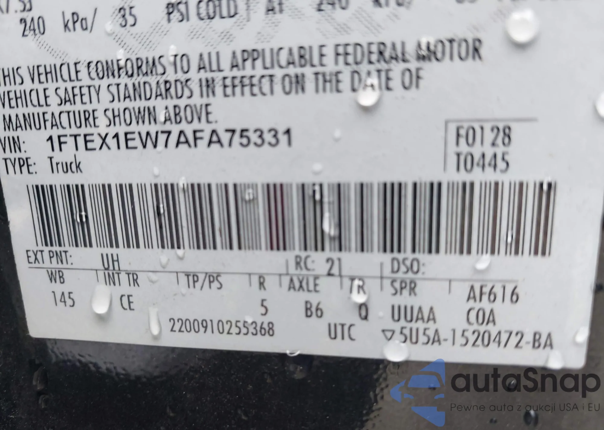 LOT: 42226258 VIN: 1FTEX1EW7AFA75331