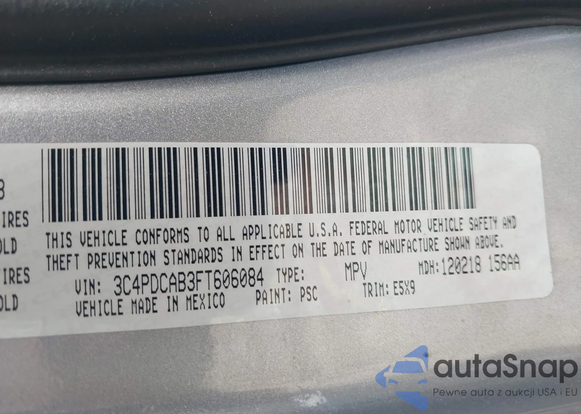 • VIN 3C4PDCAB3FT606084