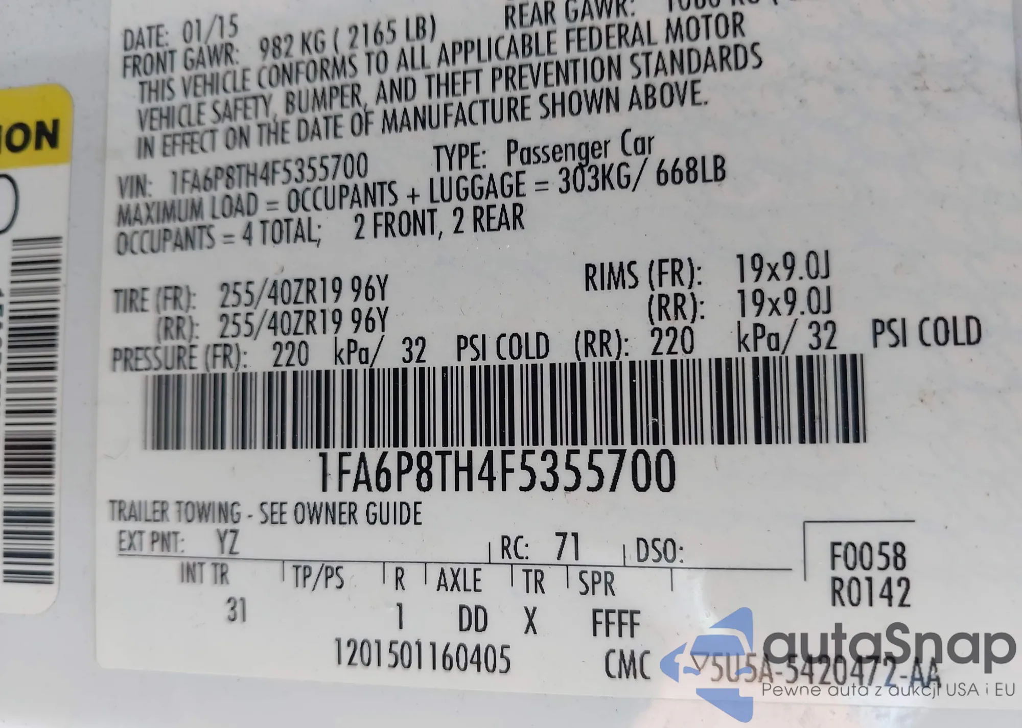 LOT: 42193917 VIN: 3VW2K7AJ8FM406923