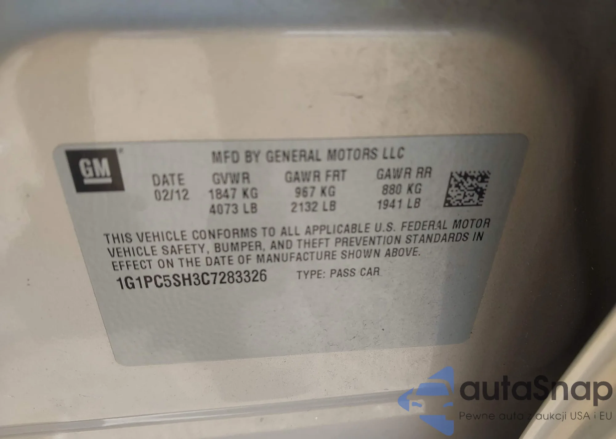 • VIN 1G1FW6S0XP4112907