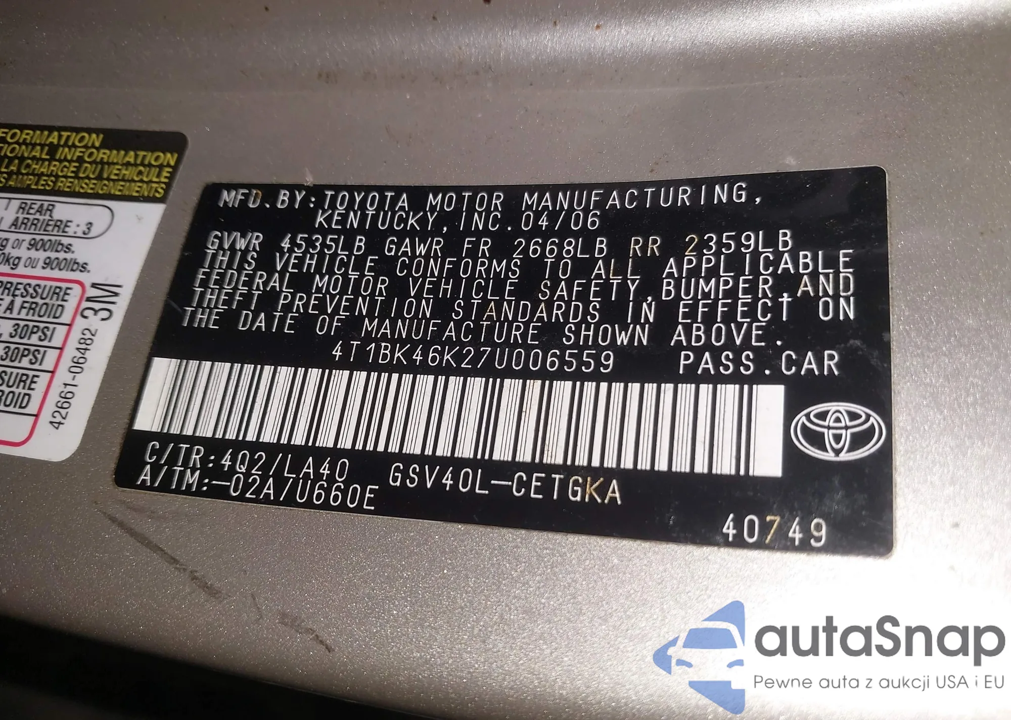 • VIN 4T1BK46K27U006559