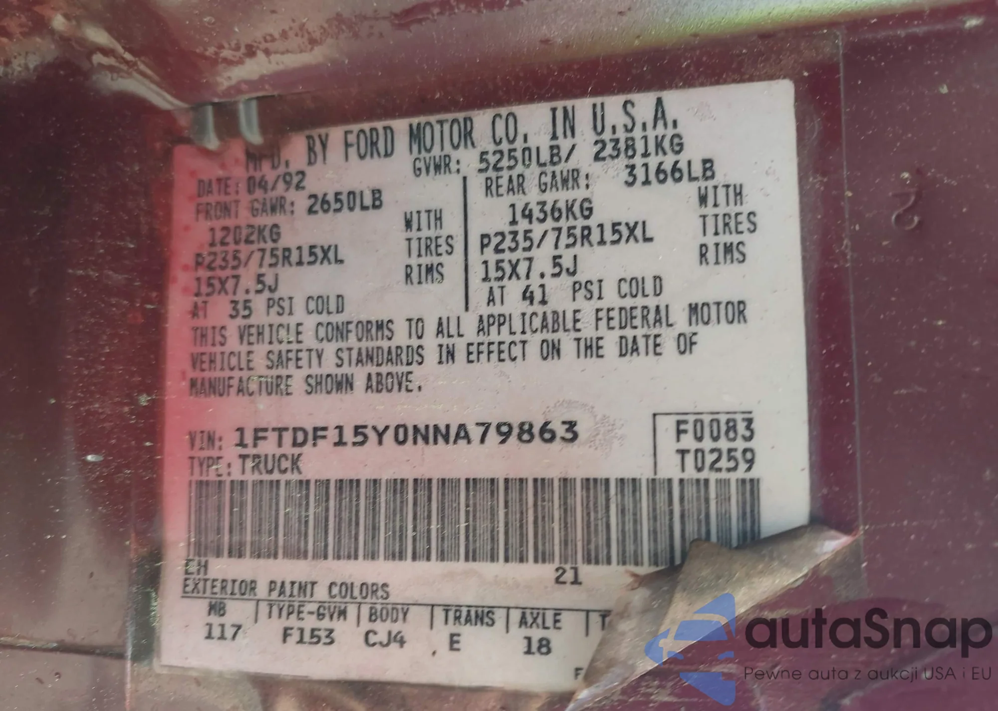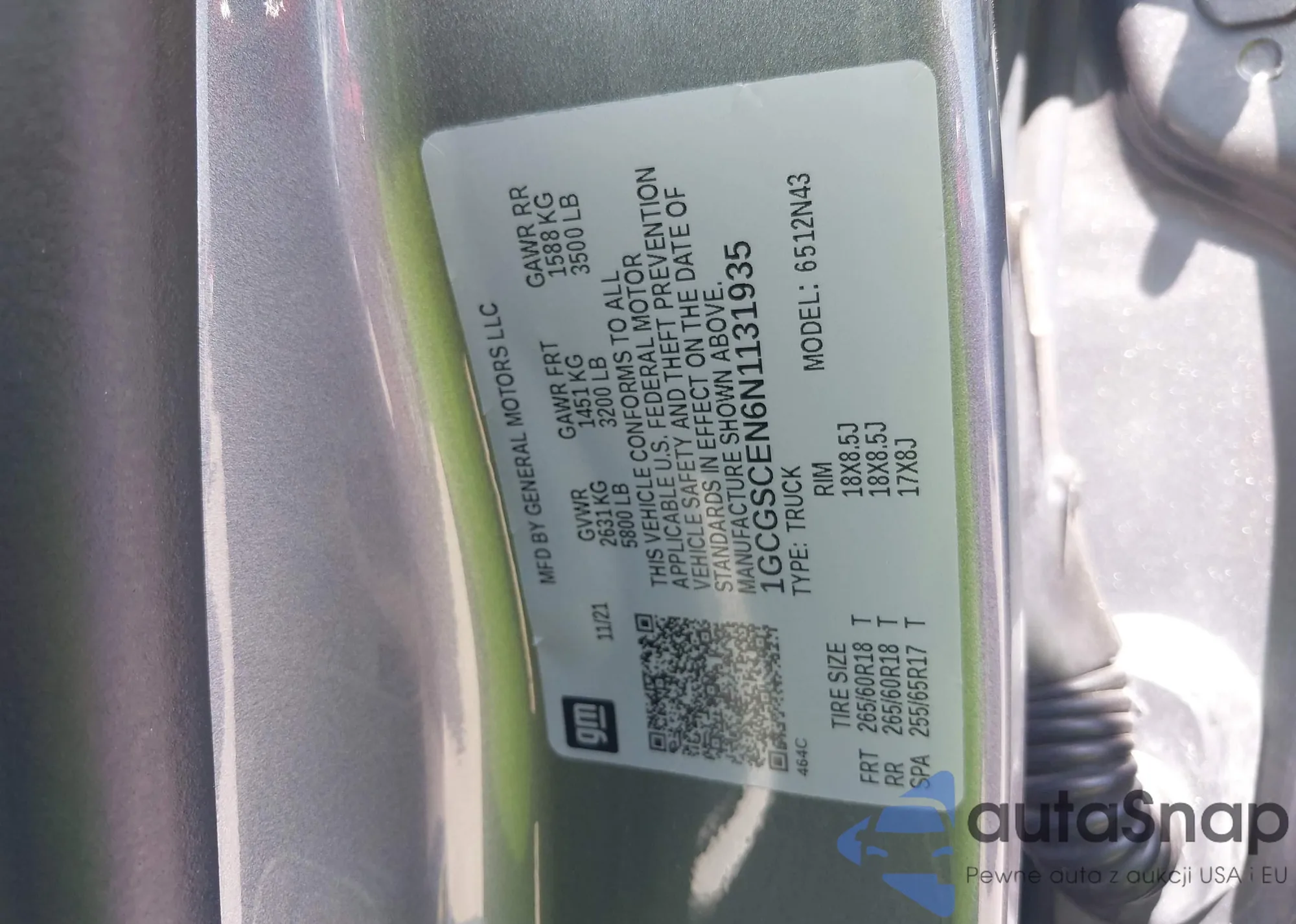 LOT: 41859925 VIN: 1GCGSCEN6N1131935