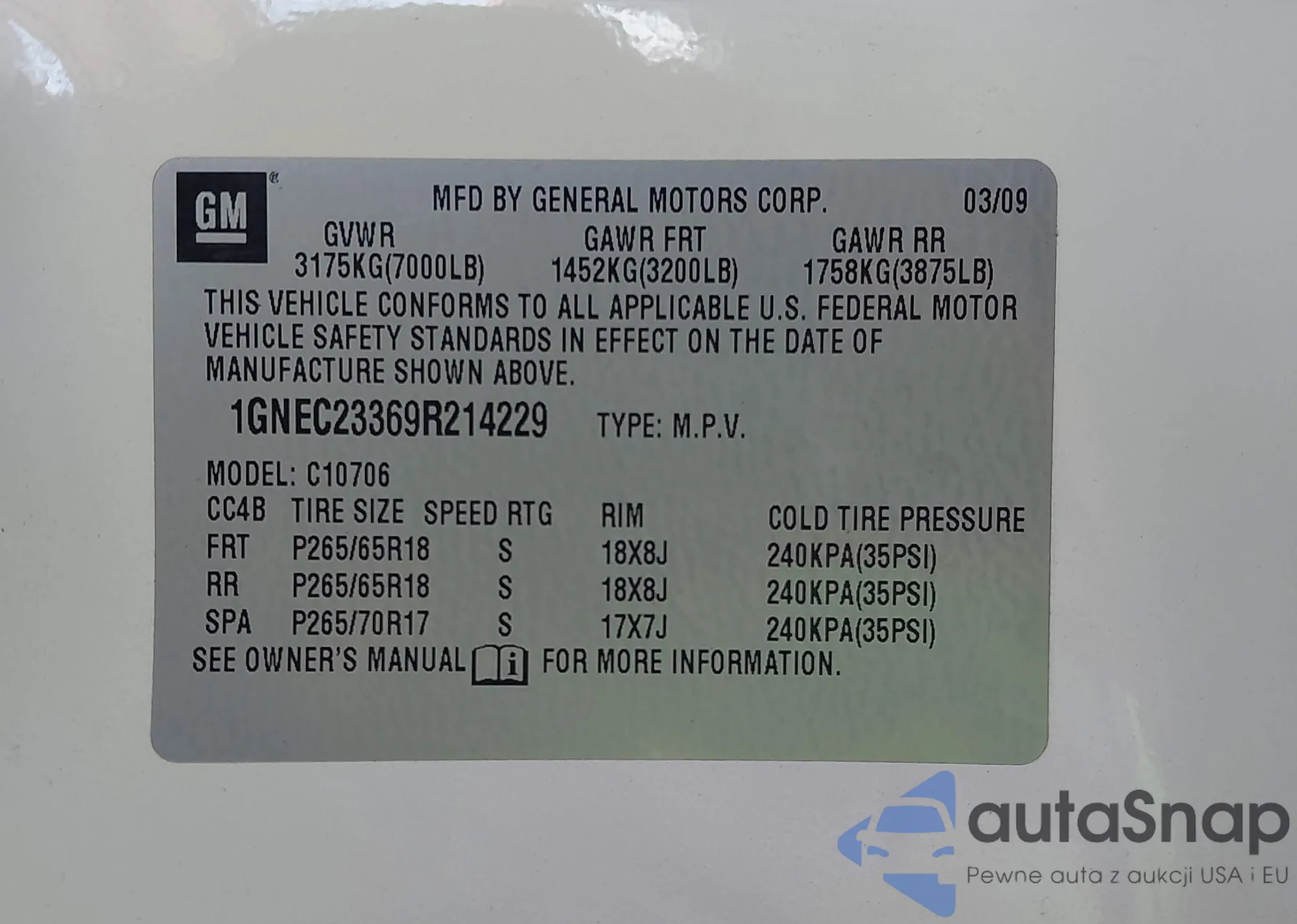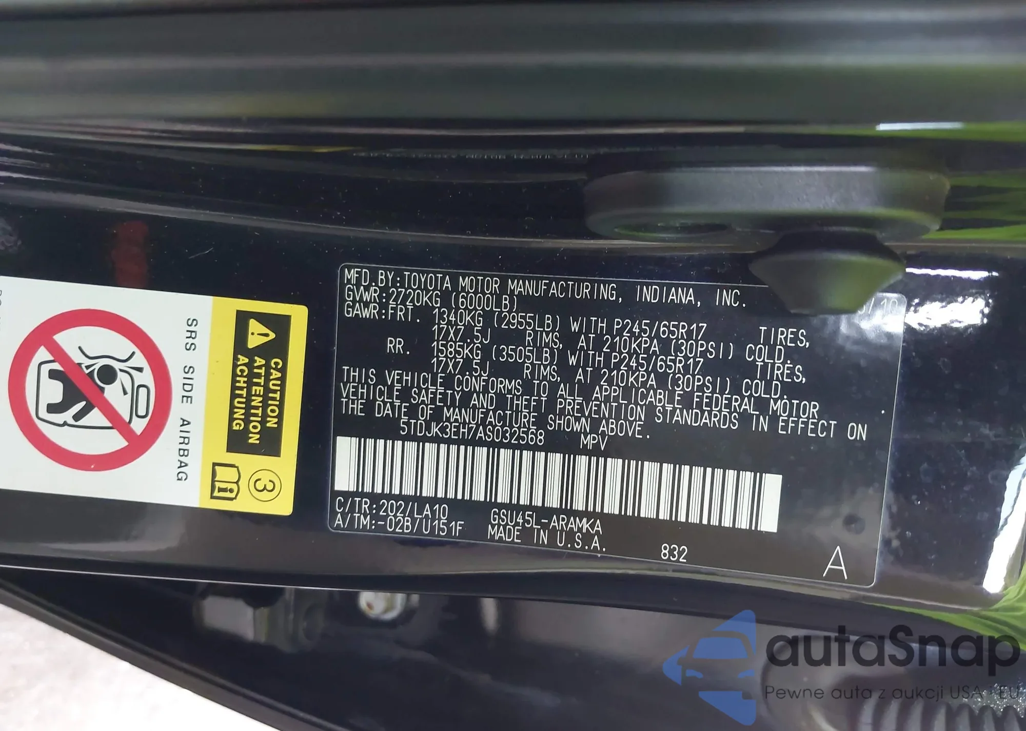 LOT: 42214894 VIN: 5TDJK3EH7AS032568