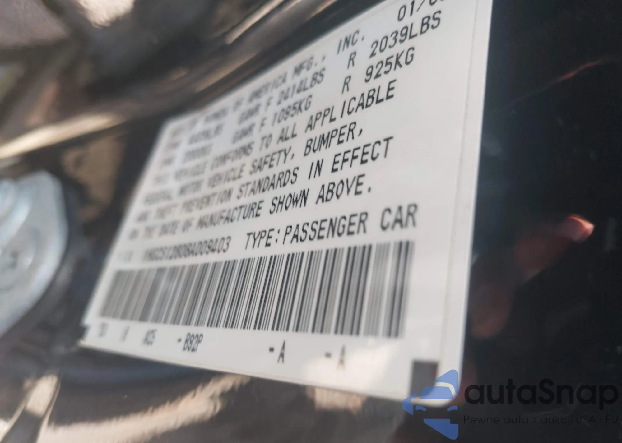 LOT: 42219597 VIN: 1HGCS12808A009403
