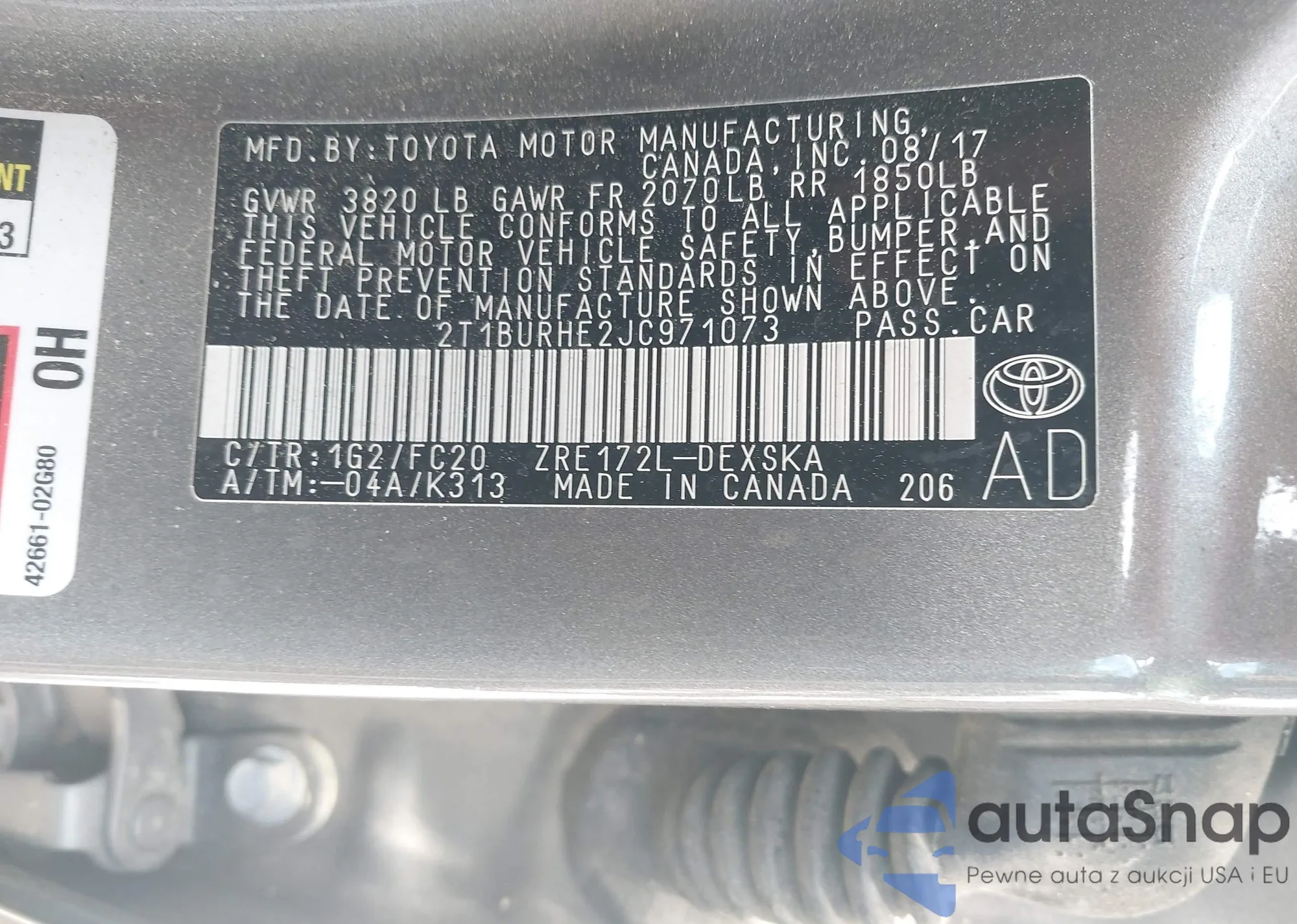 • VIN 4T1B11HK3JU529787