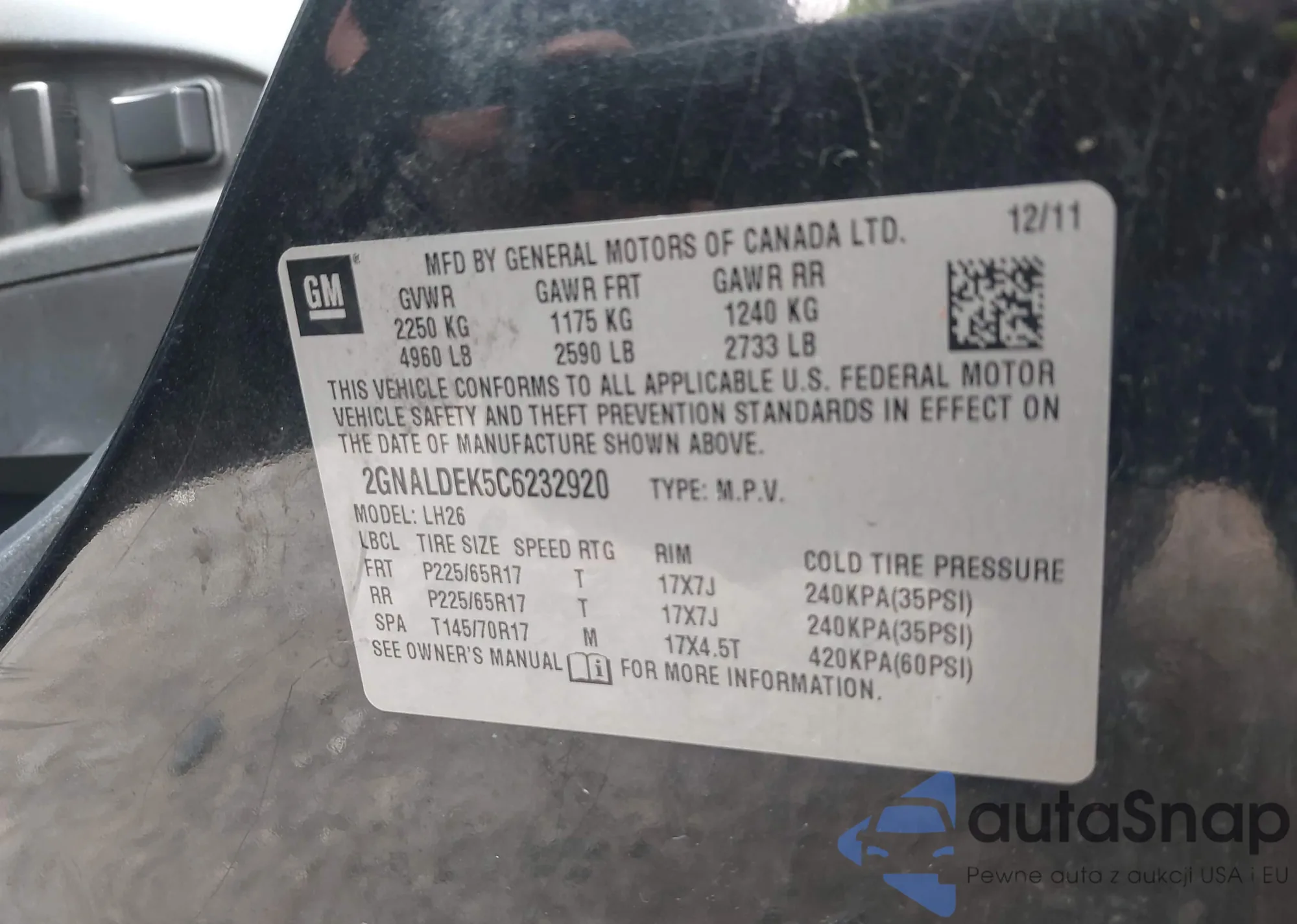• VIN 2GNALDEK5C6232920