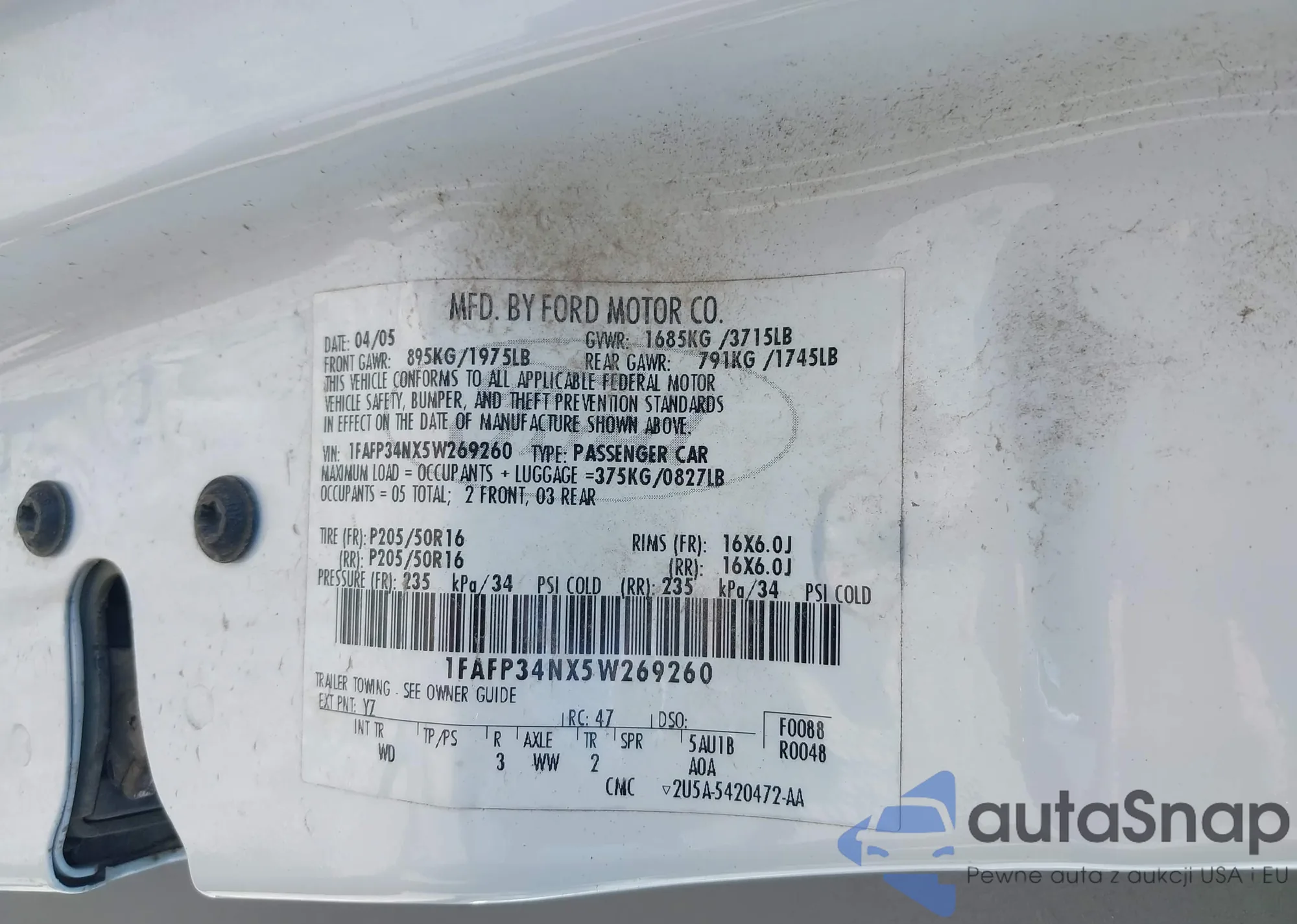 LOT: 42235464 VIN: 1FAFP34NX5W269260