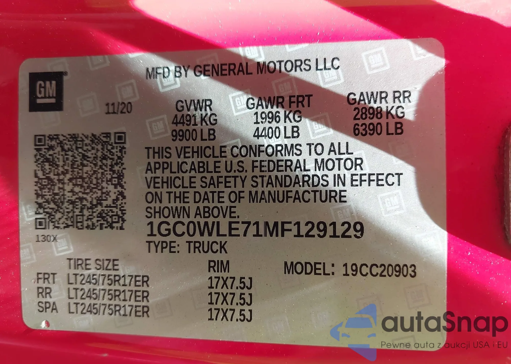 • VIN 1GC0WLE71MF129129
