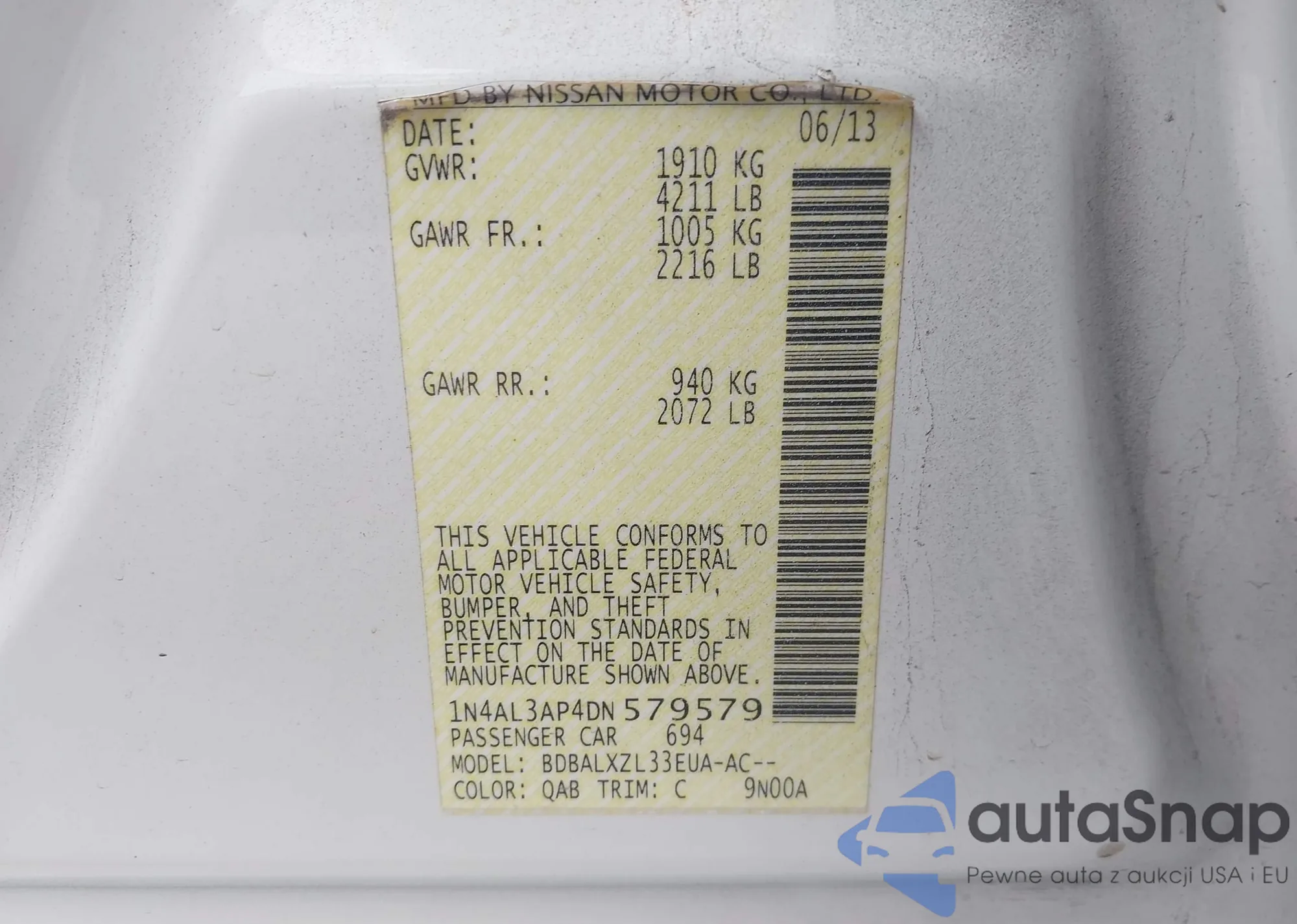 • VIN 1N4AL3AP4DN579579