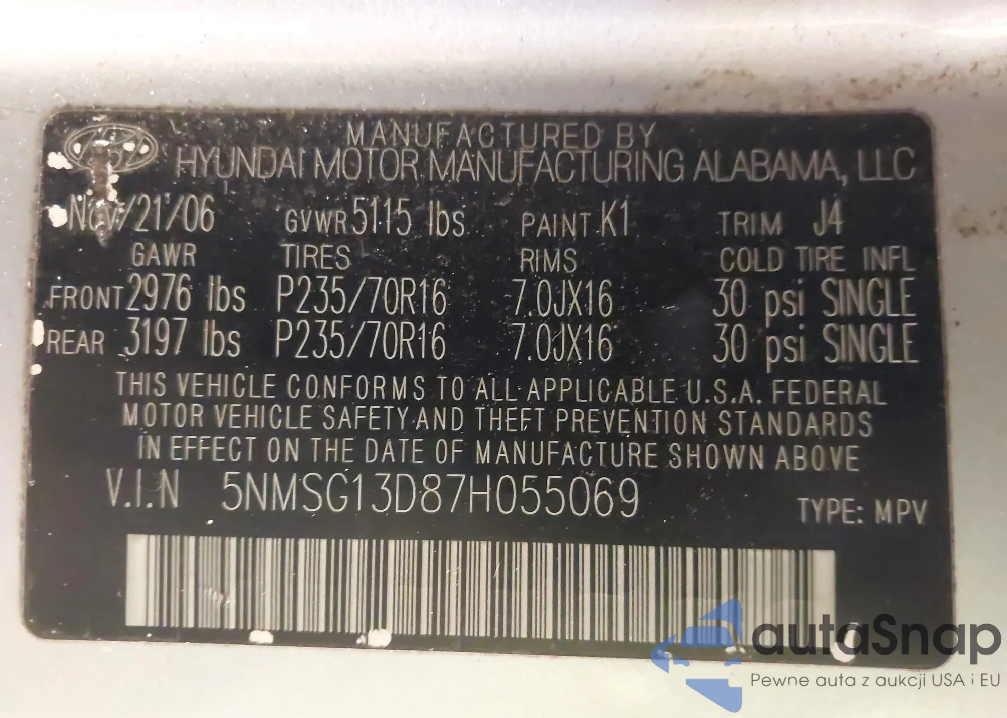 • VIN 5NMSG13D87H055069