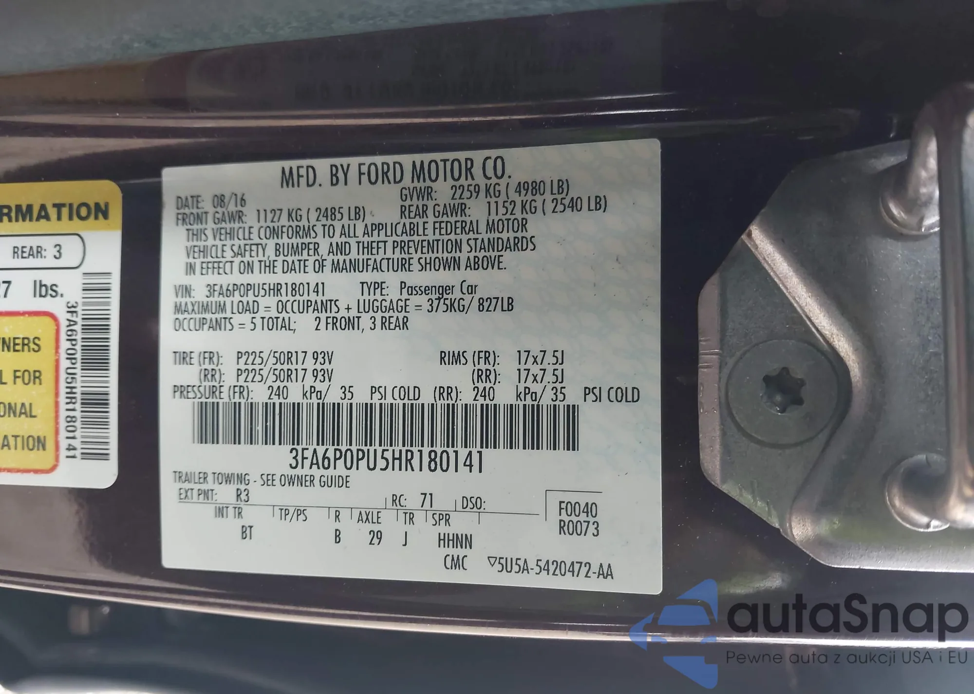 • VIN 3FA6P0PU5HR180141