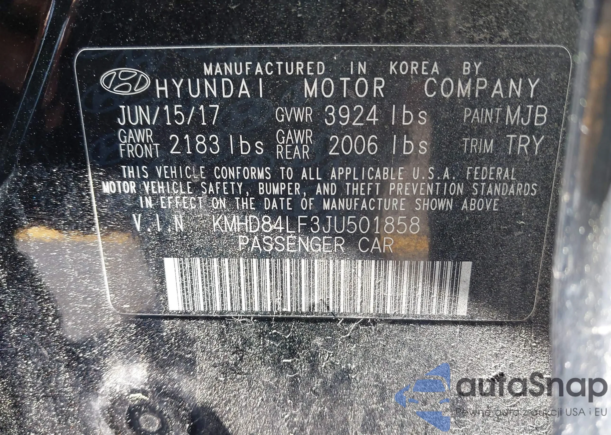 • VIN KMHD84LF3JU501858