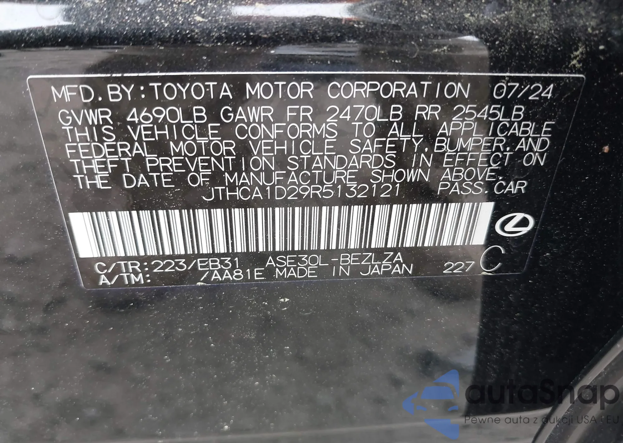 LOT: 42084925 VIN: JTHCA1D29R5132121