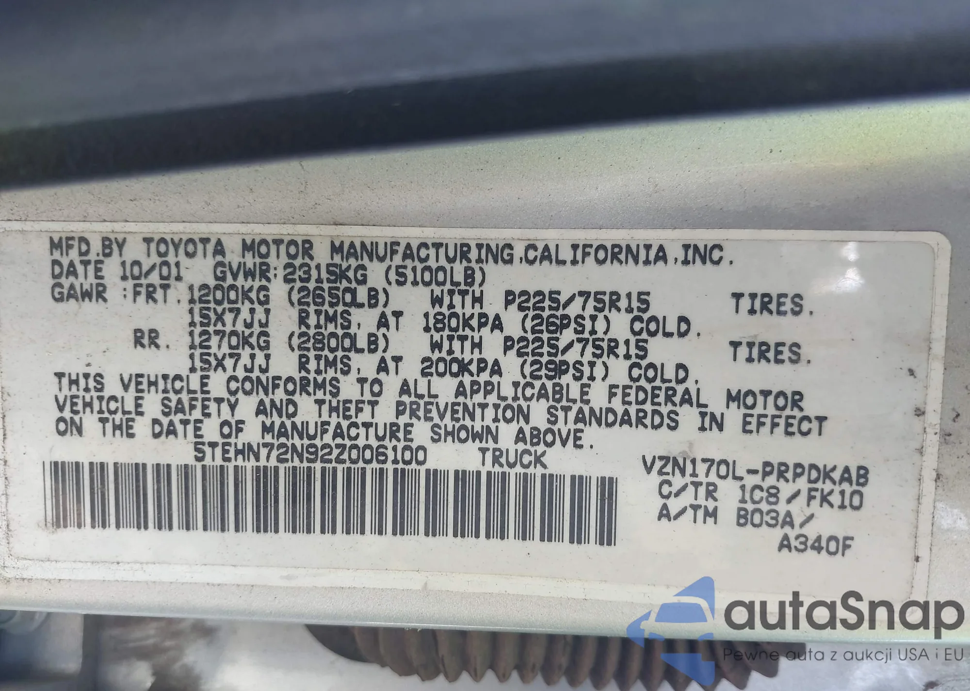 • VIN 5TEHN72N92Z006100
