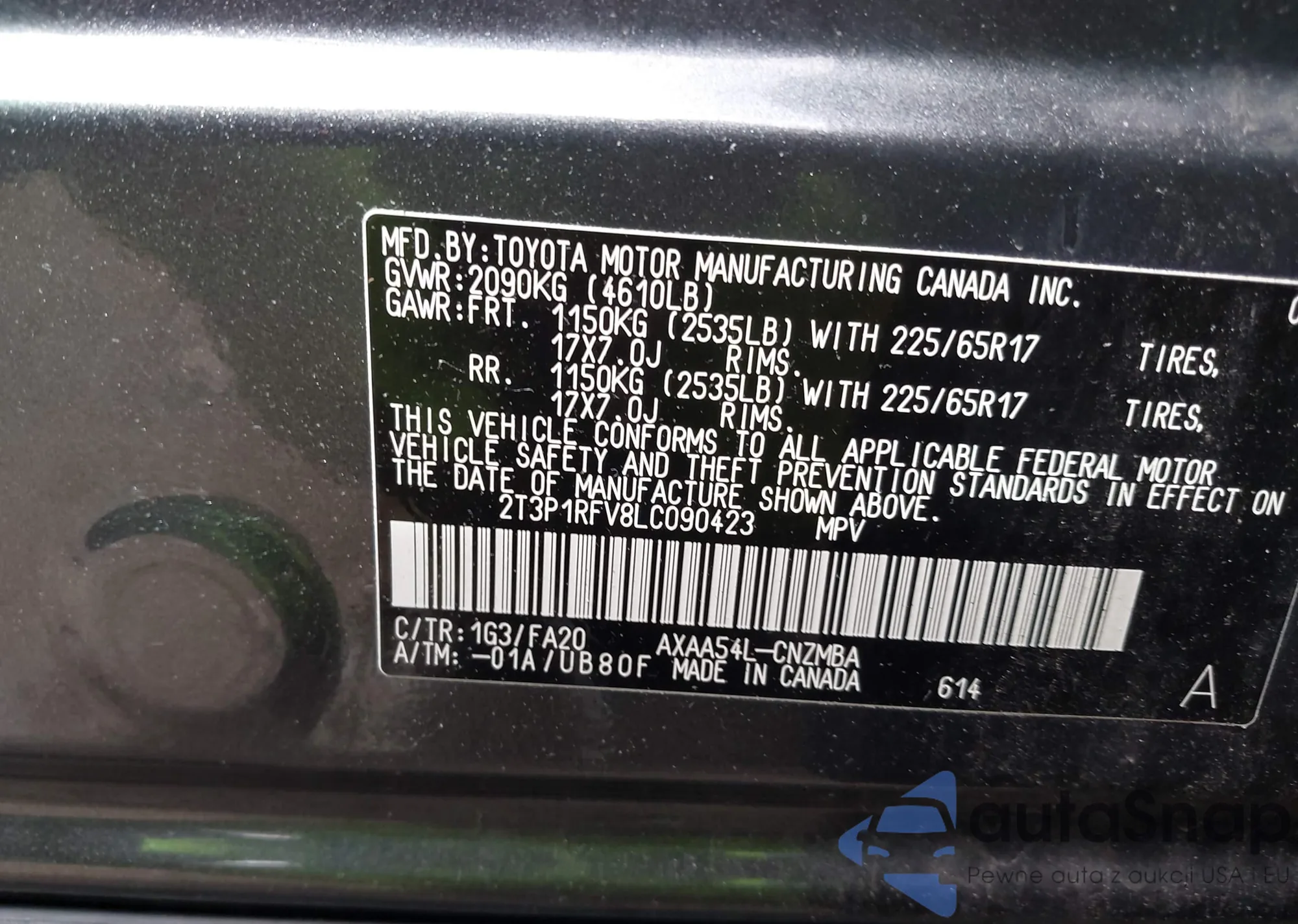 LOT: 42167535 VIN: 2T3P1RFV8LC090423