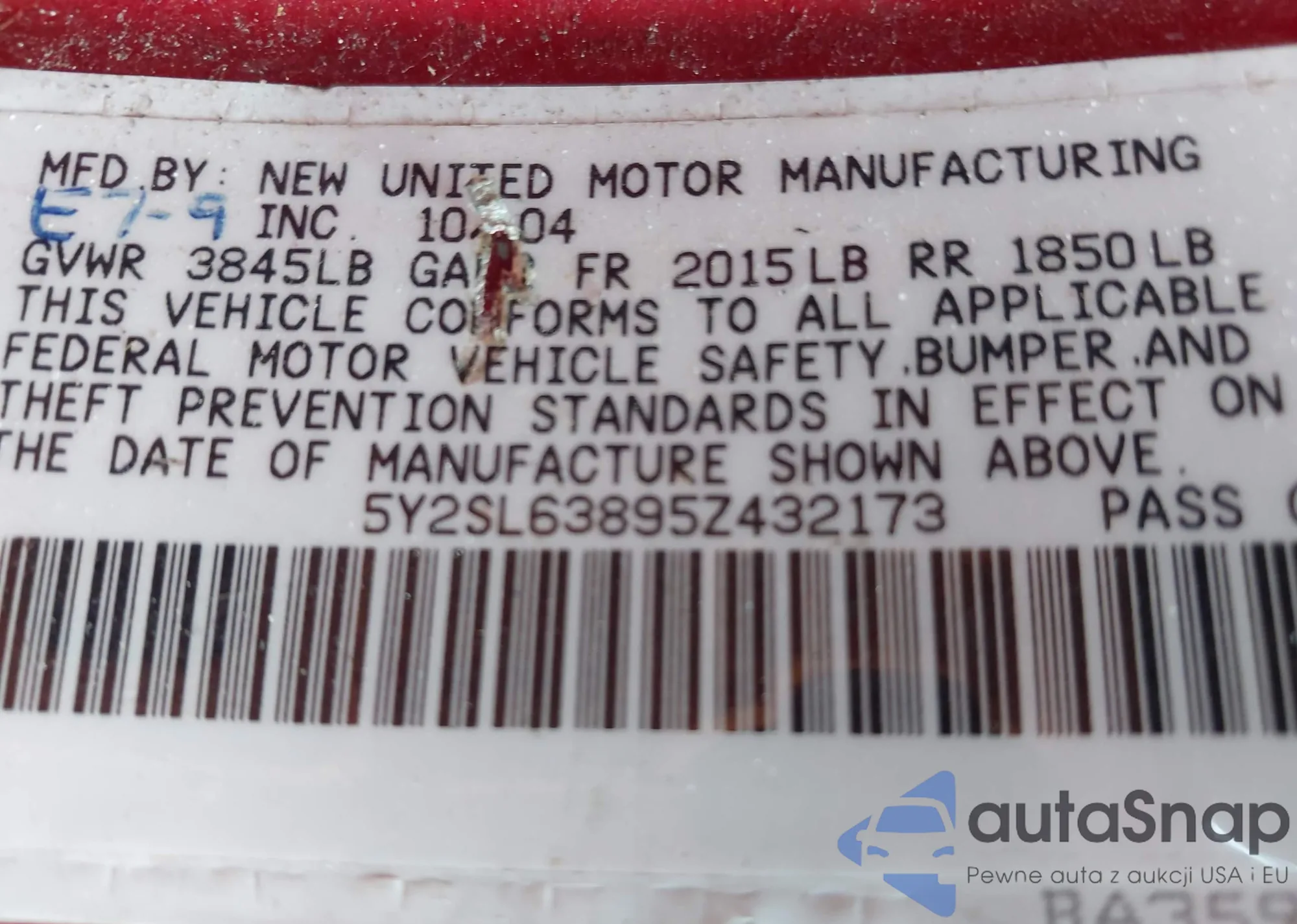 • VIN 5Y2SL63895Z432173