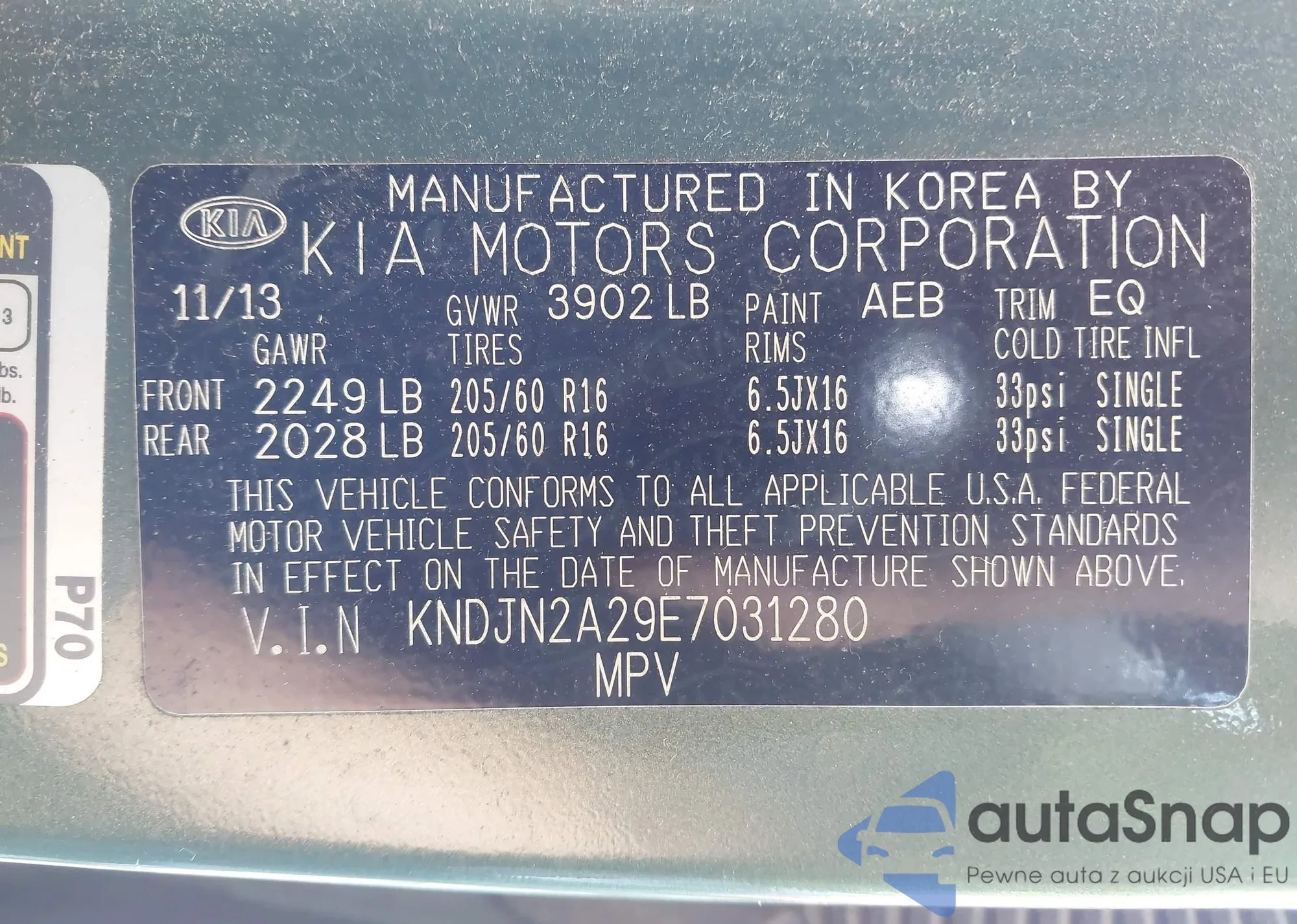 LOT: 42200706 VIN: KNDJN2A29E7031280