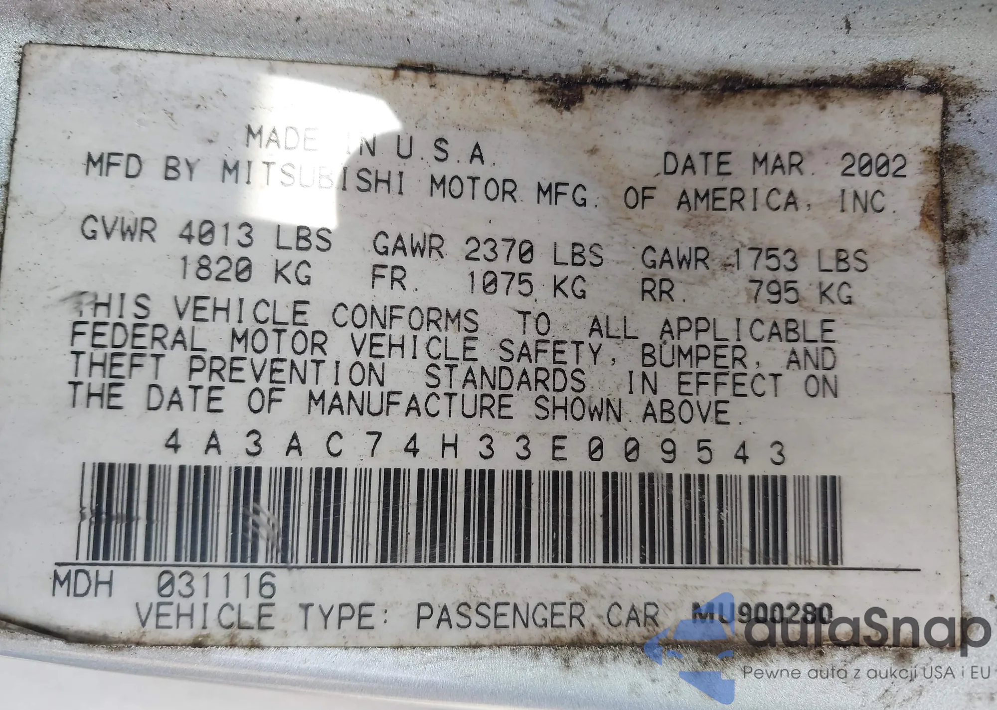 LOT: 42210236 VIN: 4A3AC74H33E009543