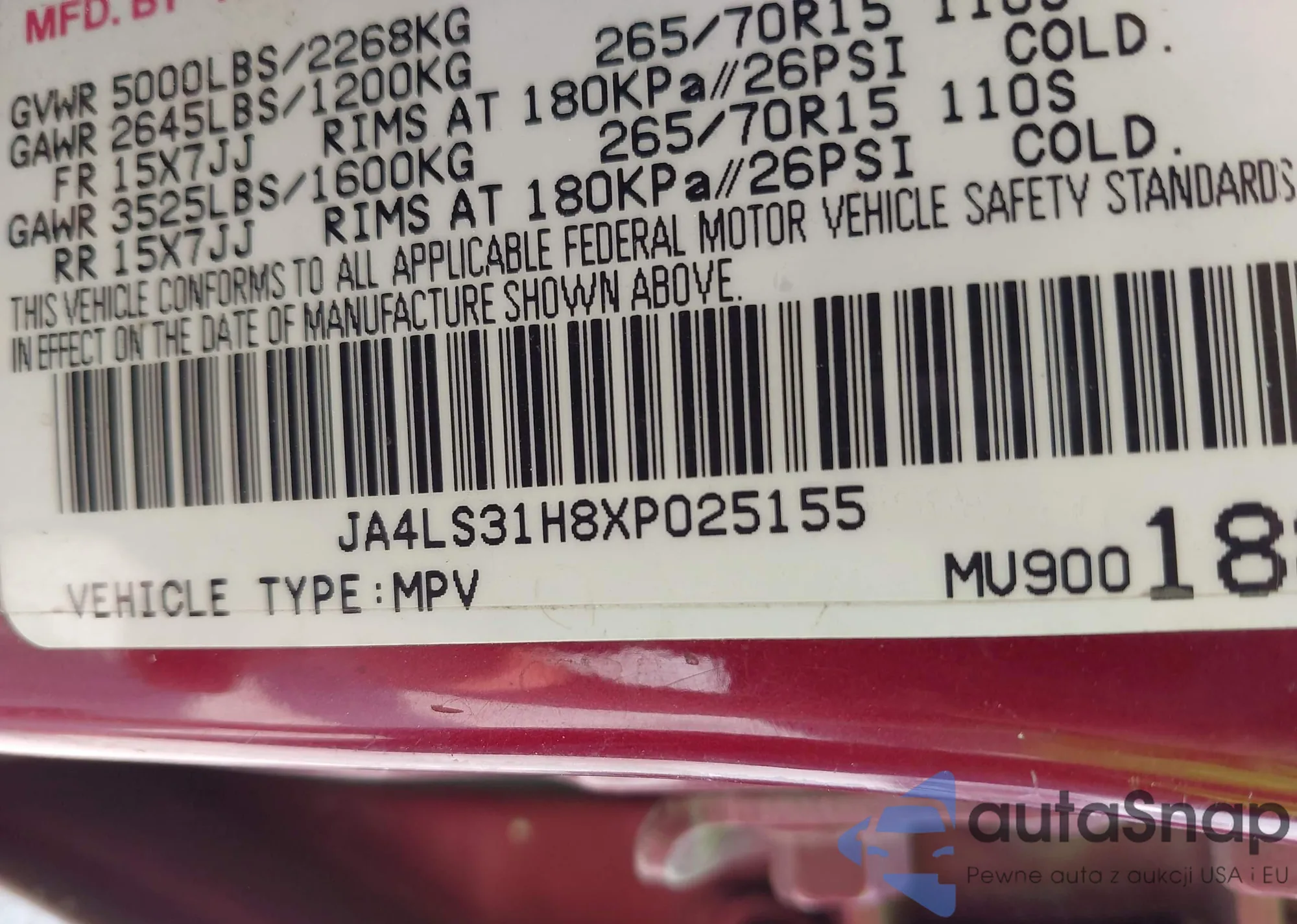 • VIN WD3PE8CD5JP598649