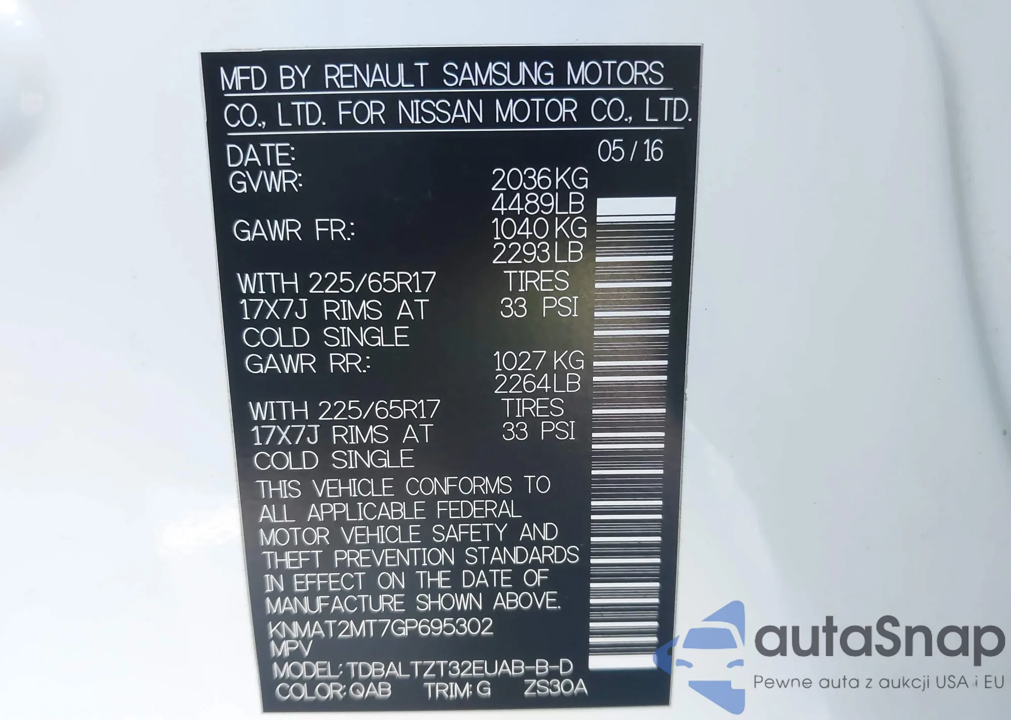 • VIN 3VWL07AJ5FM269322