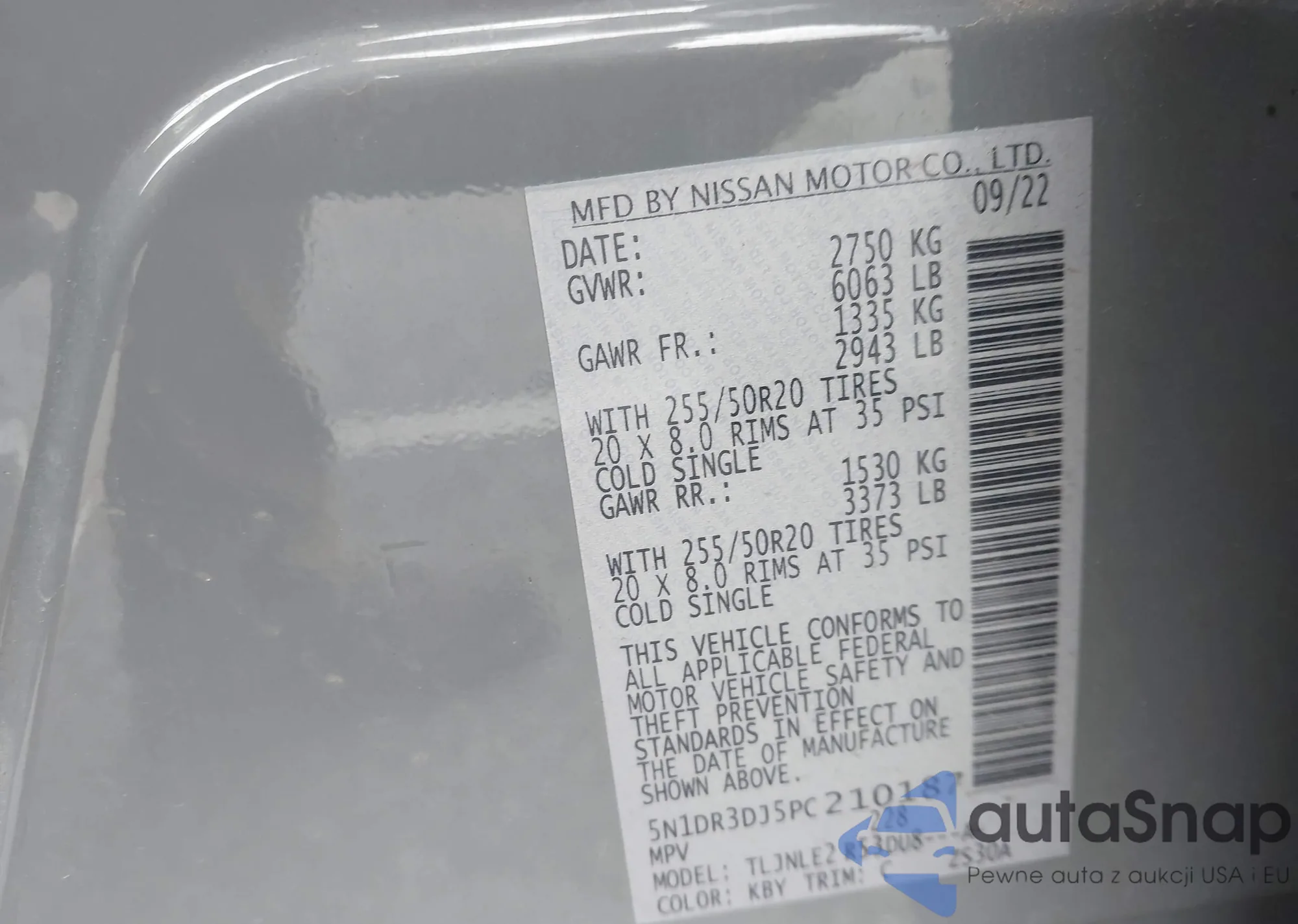 • VIN 5N1DR3DJ5PC210187