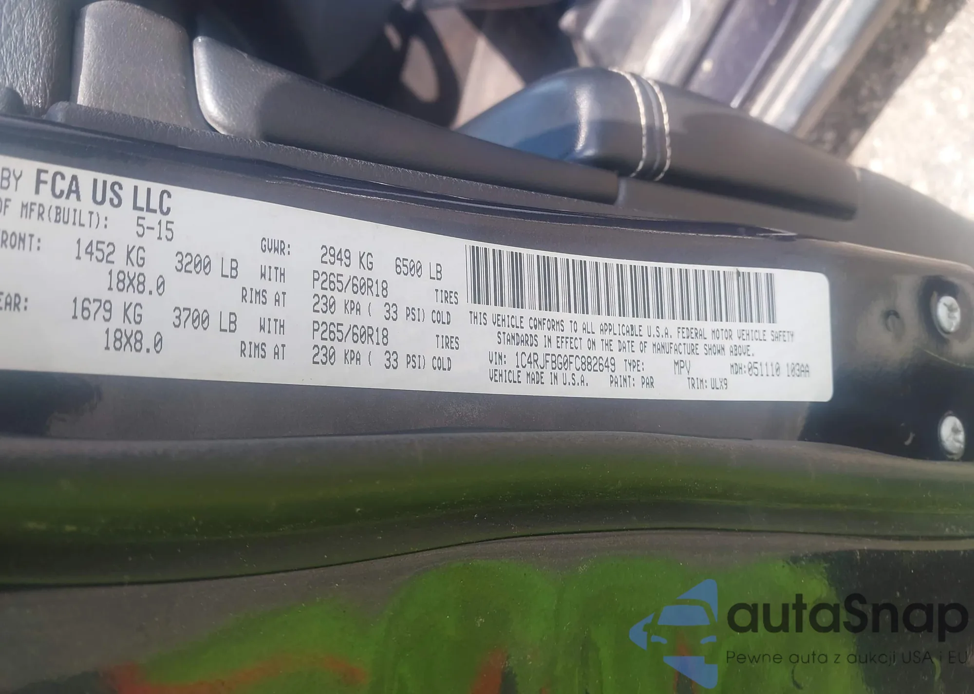 • VIN 1C4RJFBG0FC882649