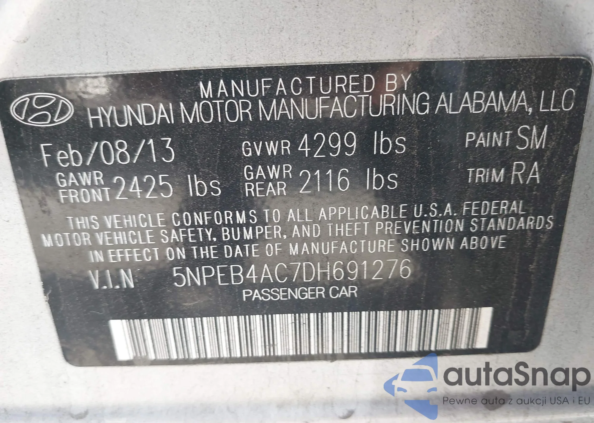 • VIN 5NPEB4AC7DH691276