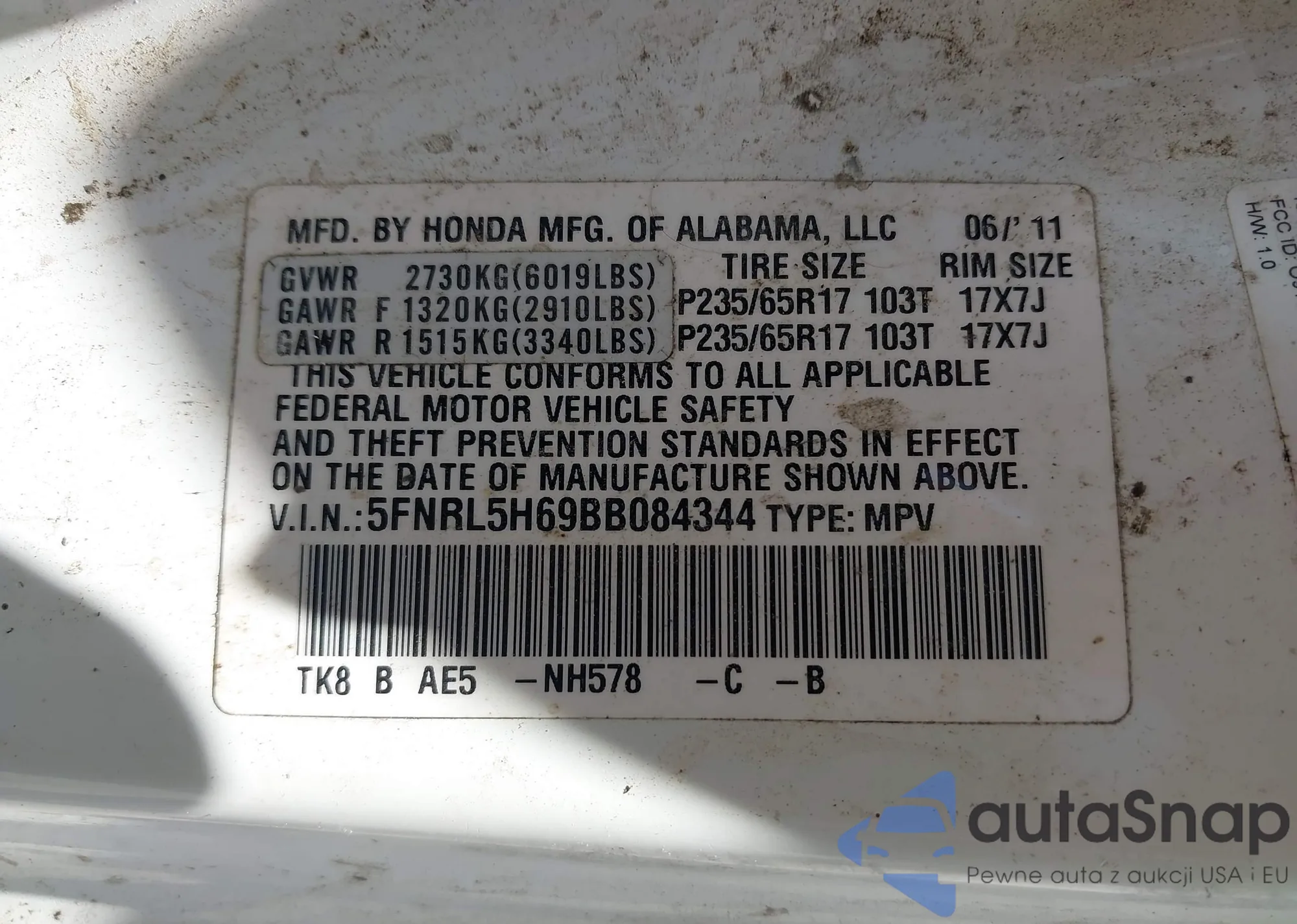 • VIN 1GKKRNED7BJ331988