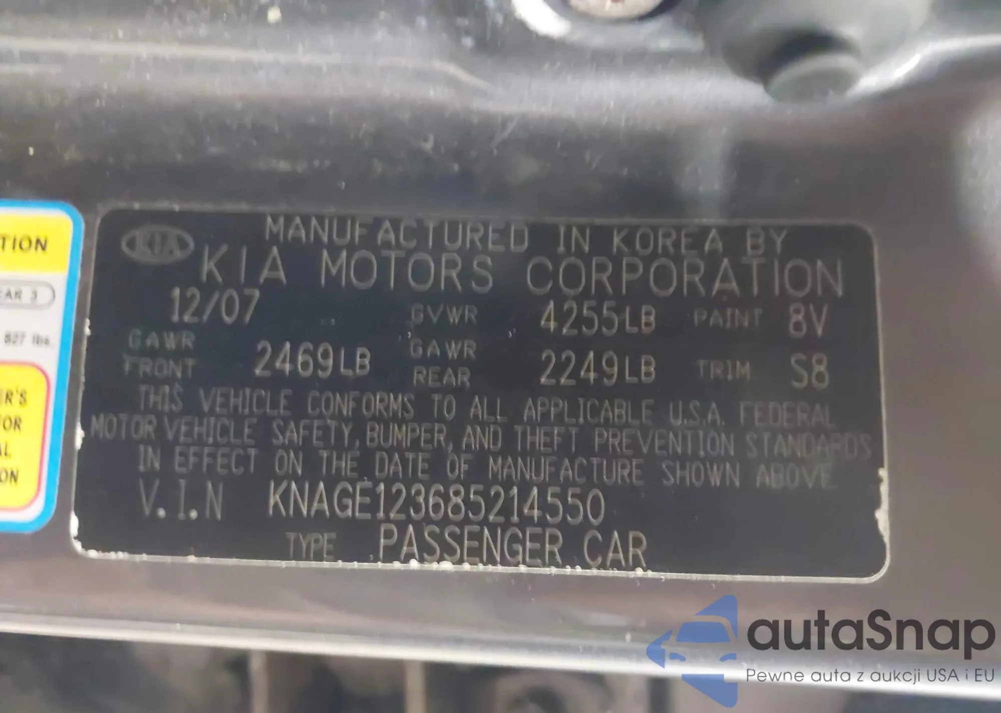 LOT: 42309705 VIN: KNAGE123685214550