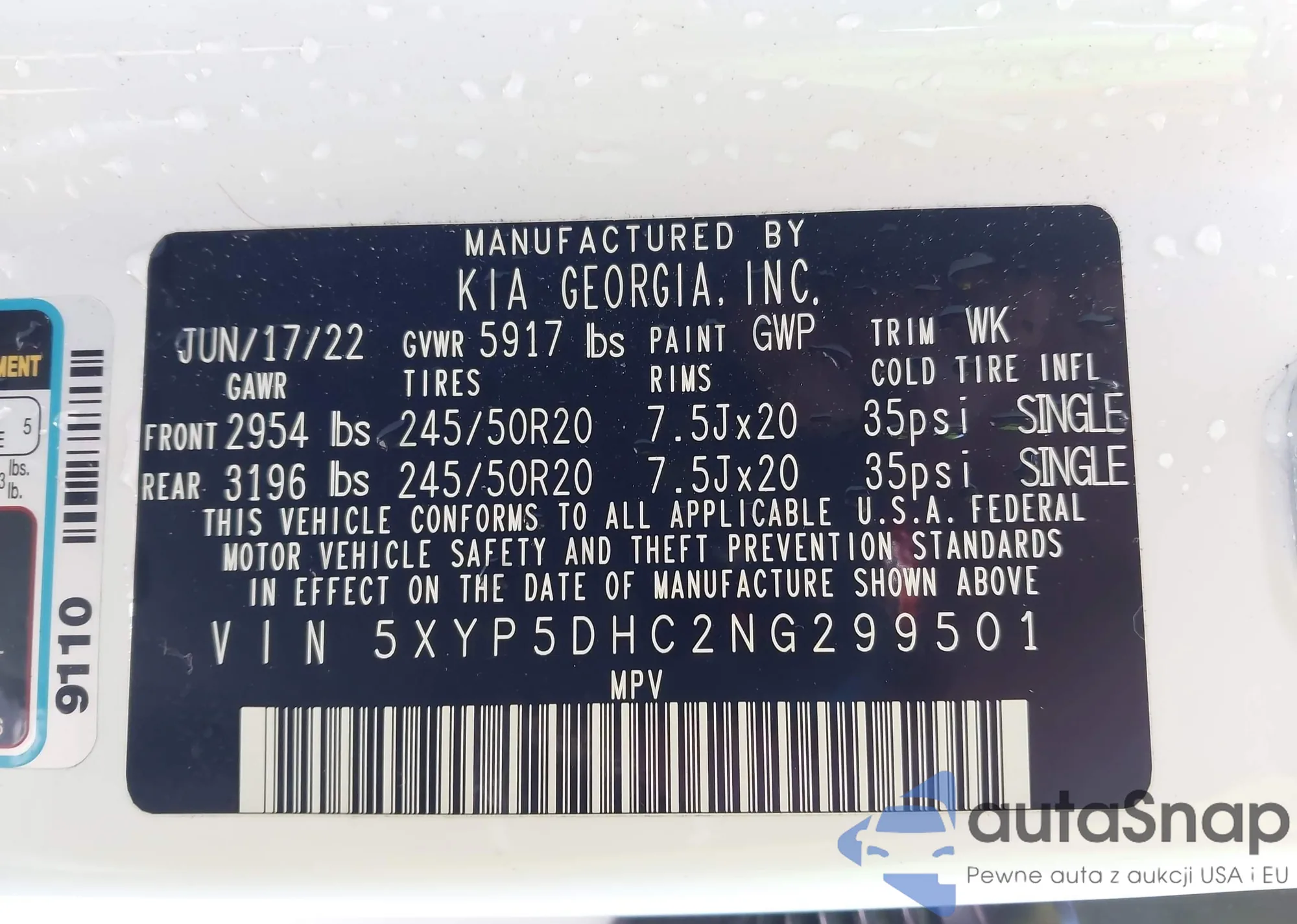 • VIN 5XYP5DHC2NG299501