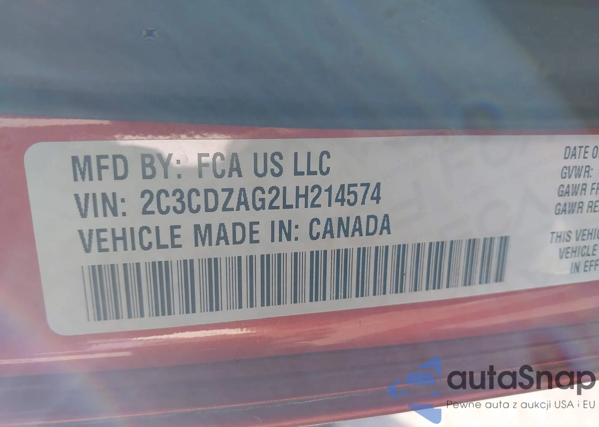 • VIN 2C3CDZAG2LH214574