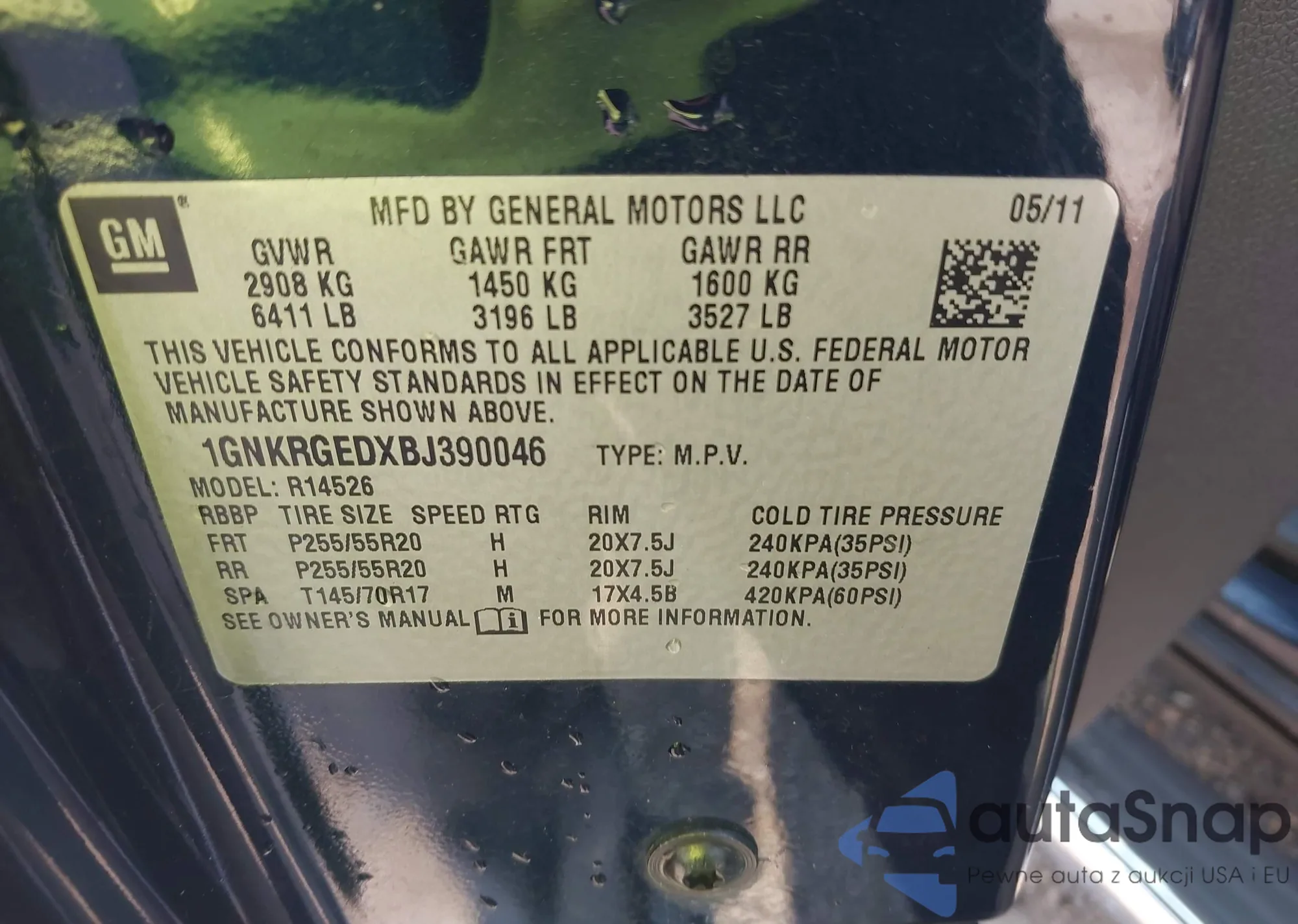 • VIN 1GNKRGEDXBJ390046