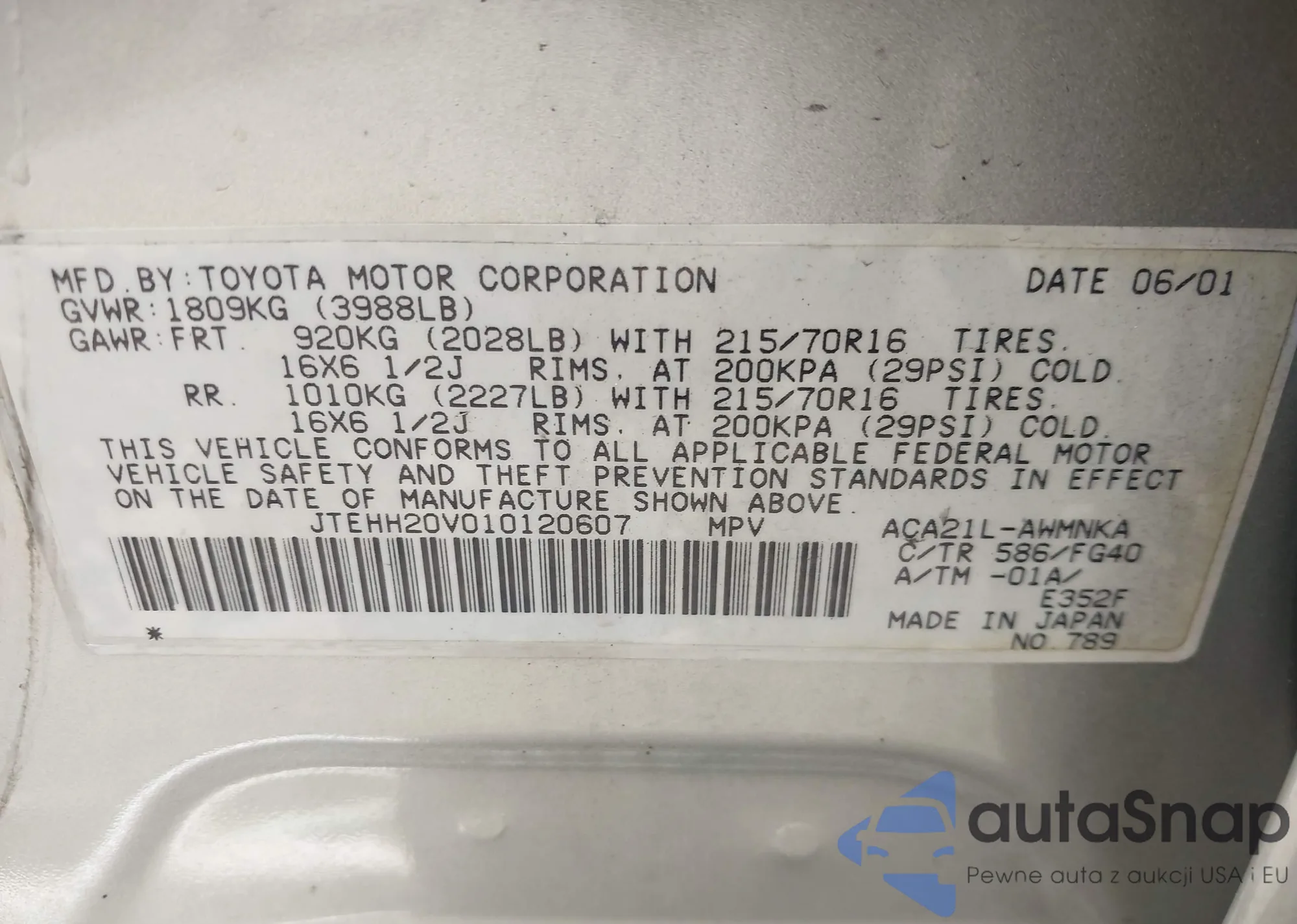 • VIN 4T1B11HK8JU014347