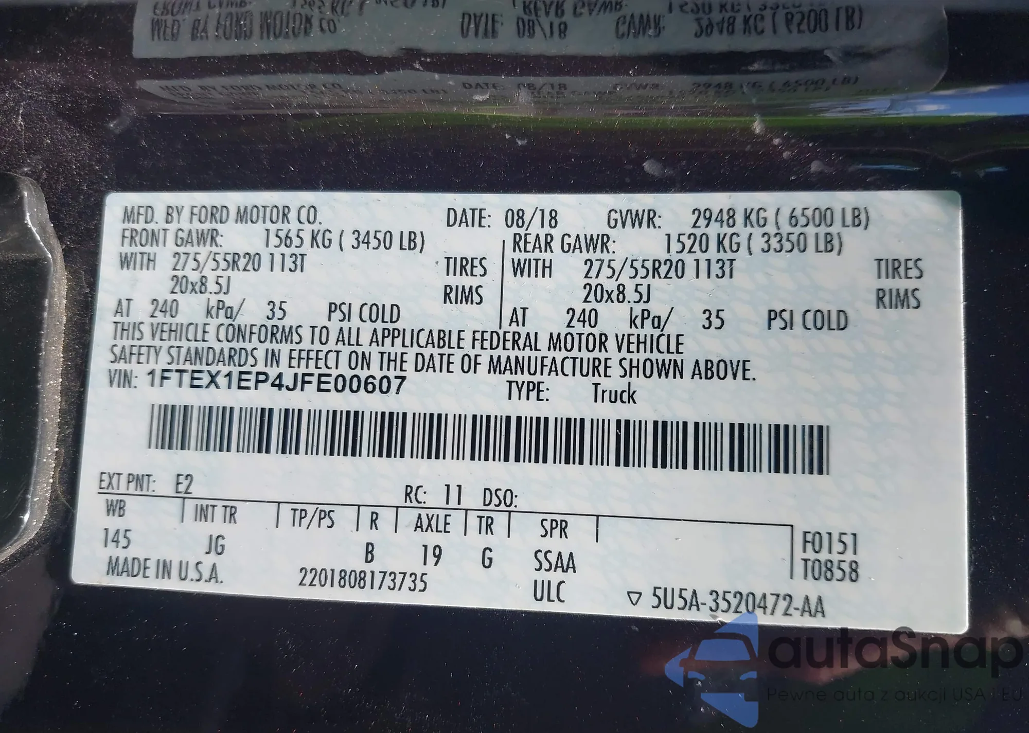 LOT: 42258768 VIN: 1FTEX1EP4JFE00607