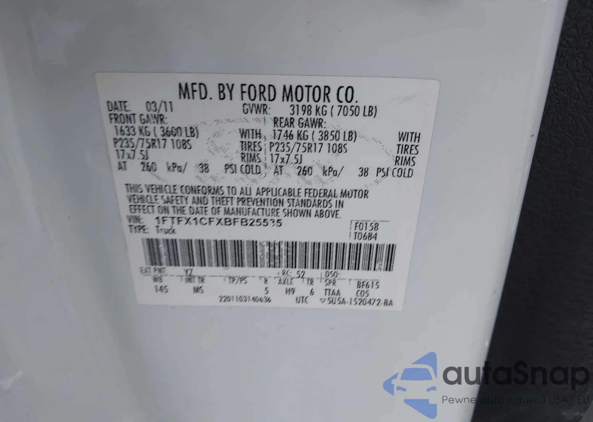 • VIN 1FTFX1CFXBFB25535