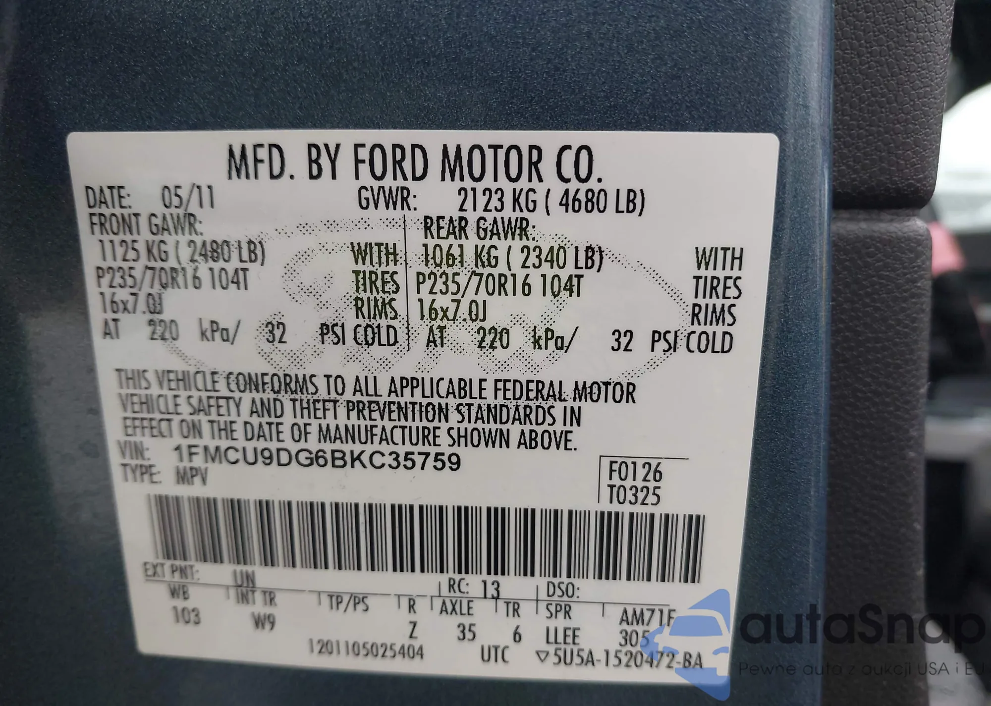 • VIN 1FMCU9DG6BKC35759