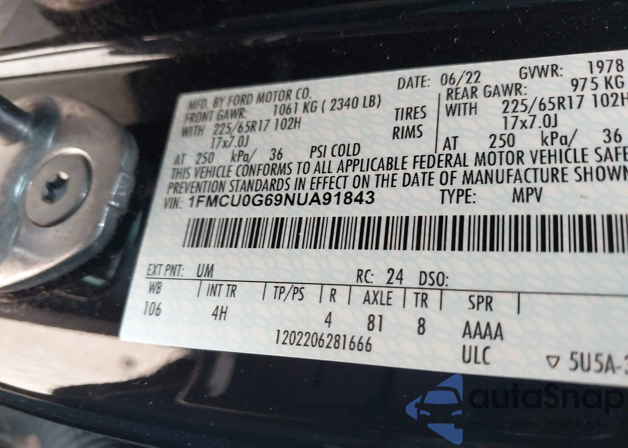 • VIN 1FMCU0G69NUA91843