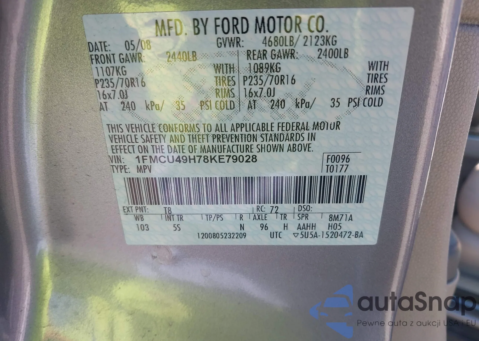 • VIN 1FMCU9G64LUC69806